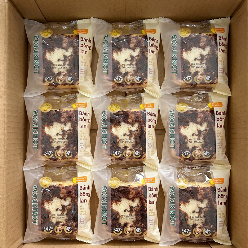 1 Thùng Bánh Bông Lan BOWKNOT Vị Chà Bông Socola – Thùng 24 Cái
