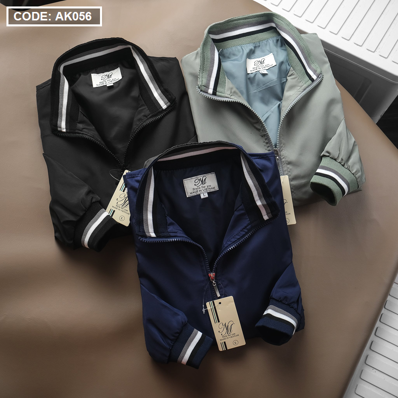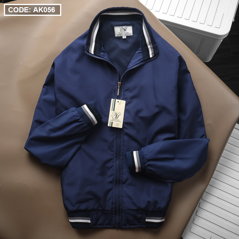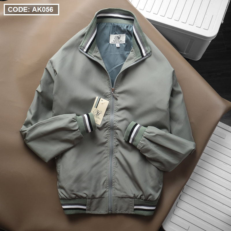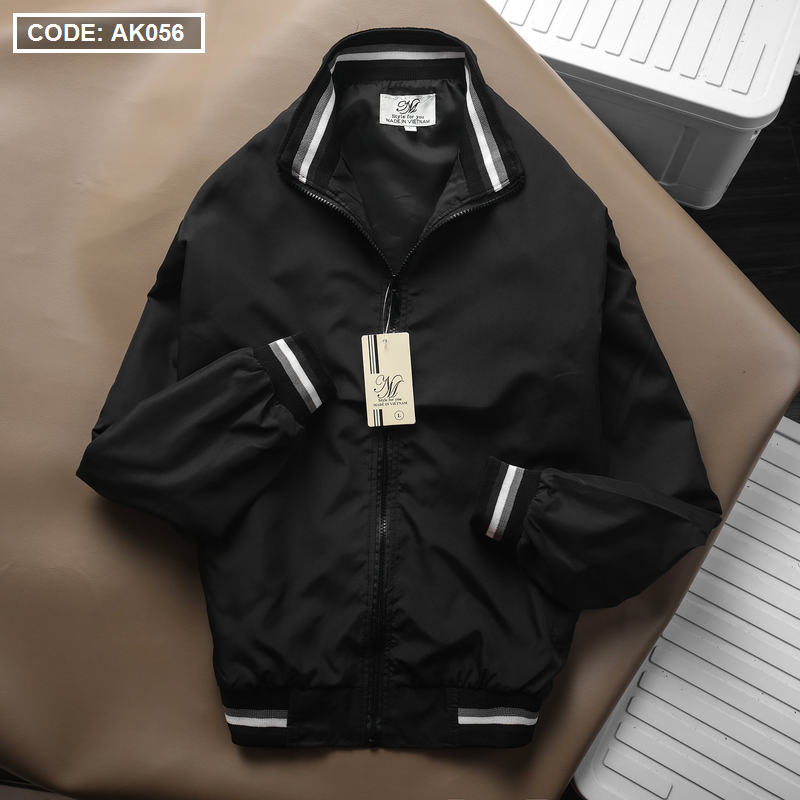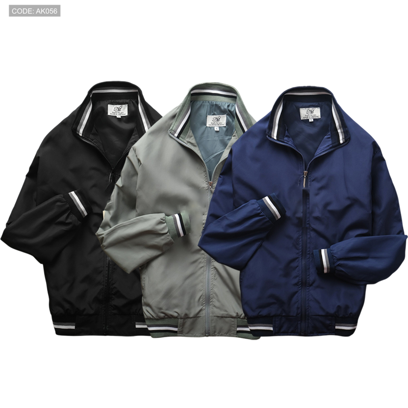 Áo Khoác Dù Nam 2 Lớp Cổ Trụ Phối Sọc