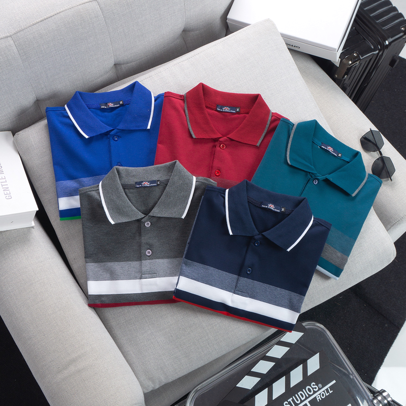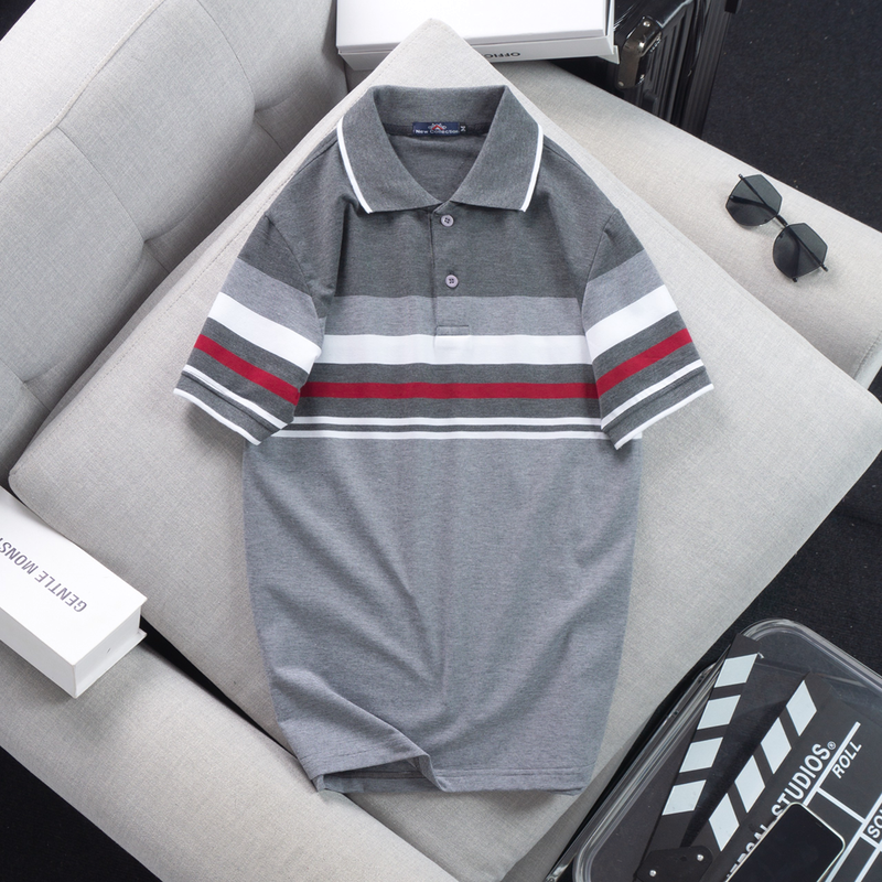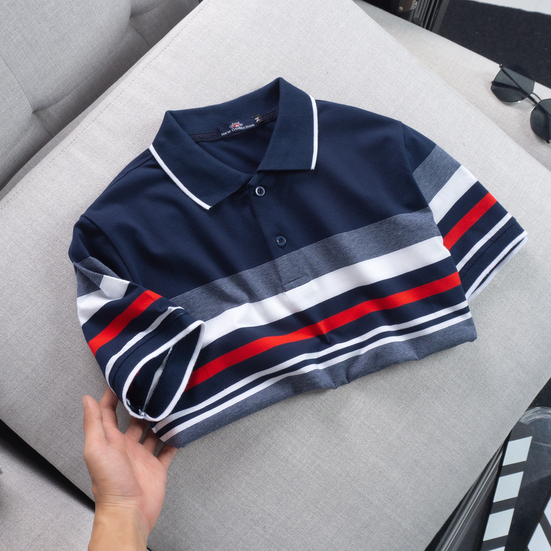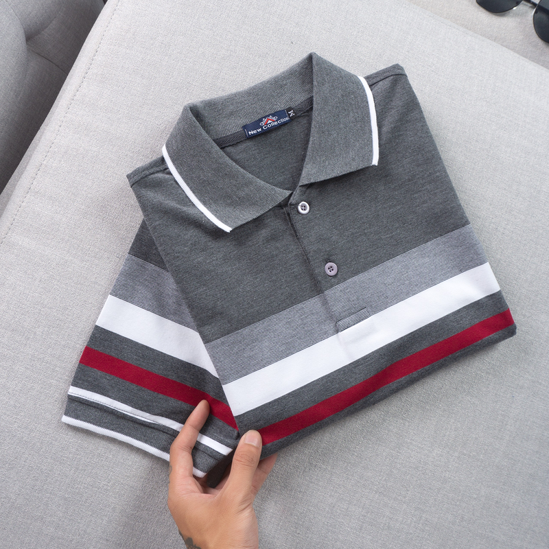 Áo thun cotton cổ bẻ sọc ngang( giá mới)