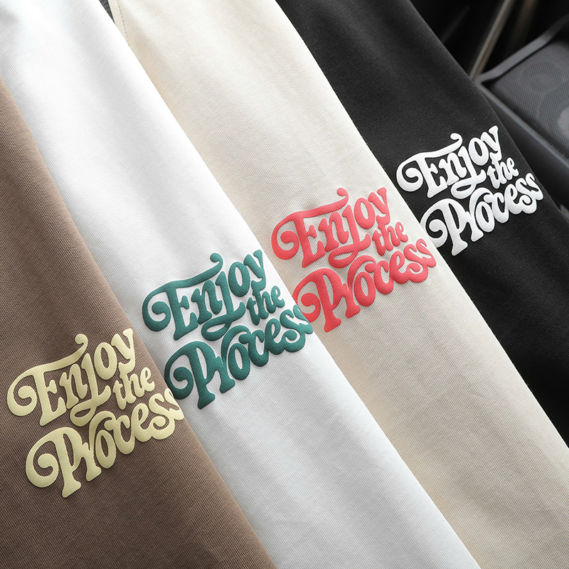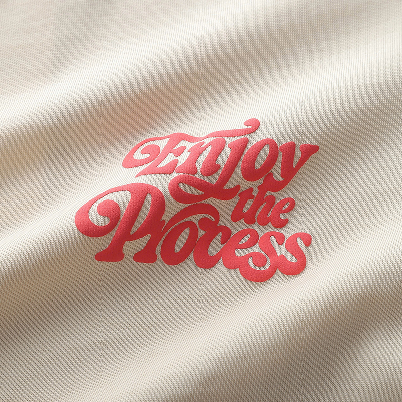 Họa tiết in bắt mắt: Áo được thiết kế với họa tiết in chữ Enjoy The Process giúp tạo cảm giác trẻ trung năng động cho trang phục của bạn.