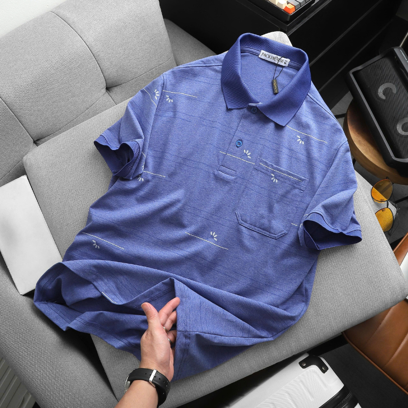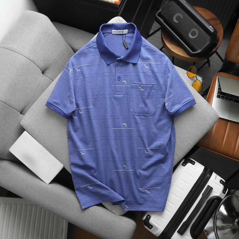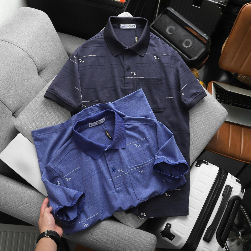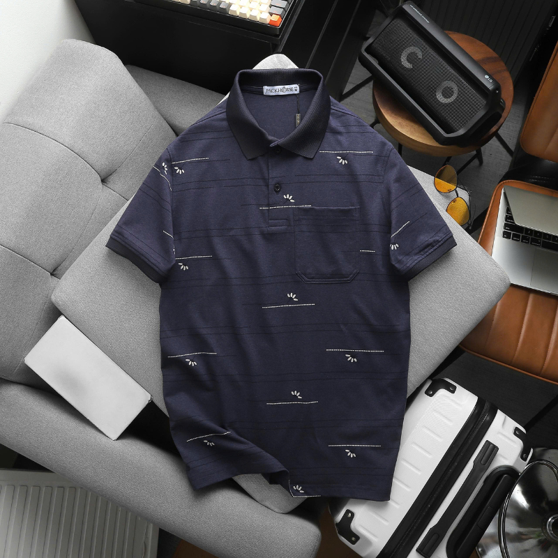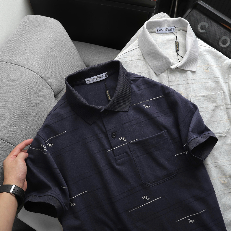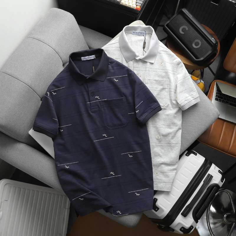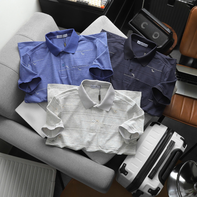 Áo Thun Nam Polo – Áo Thun Cổ Bẻ Nam Phối Sọc Hoa Túi Trước Ngực Sang Trọng Có Big Size