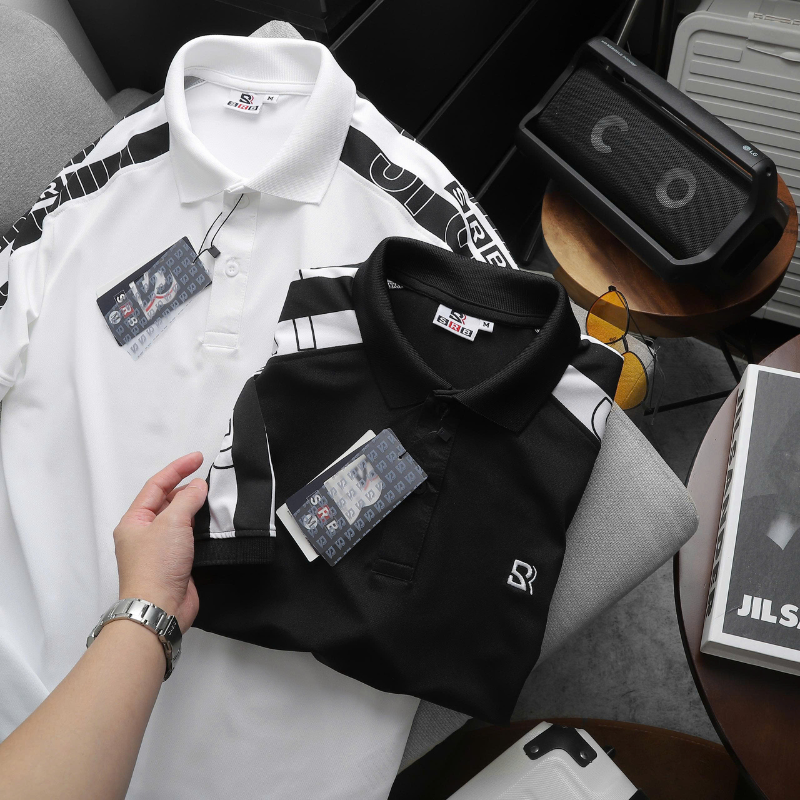 👉 Đây chính là lựa chọn dành cho bạn: Áo Thun Nam Polo Cổ Bẻ Thêu Logo SRB, tay phối sọc cá tính.