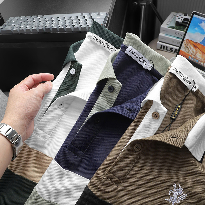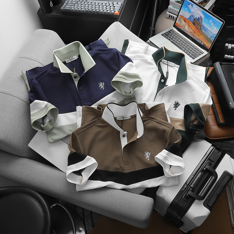 Áo Thun Polo Nam Phối Ba Màu Thiêu Logo Trước Ngực (Có Size 3x)