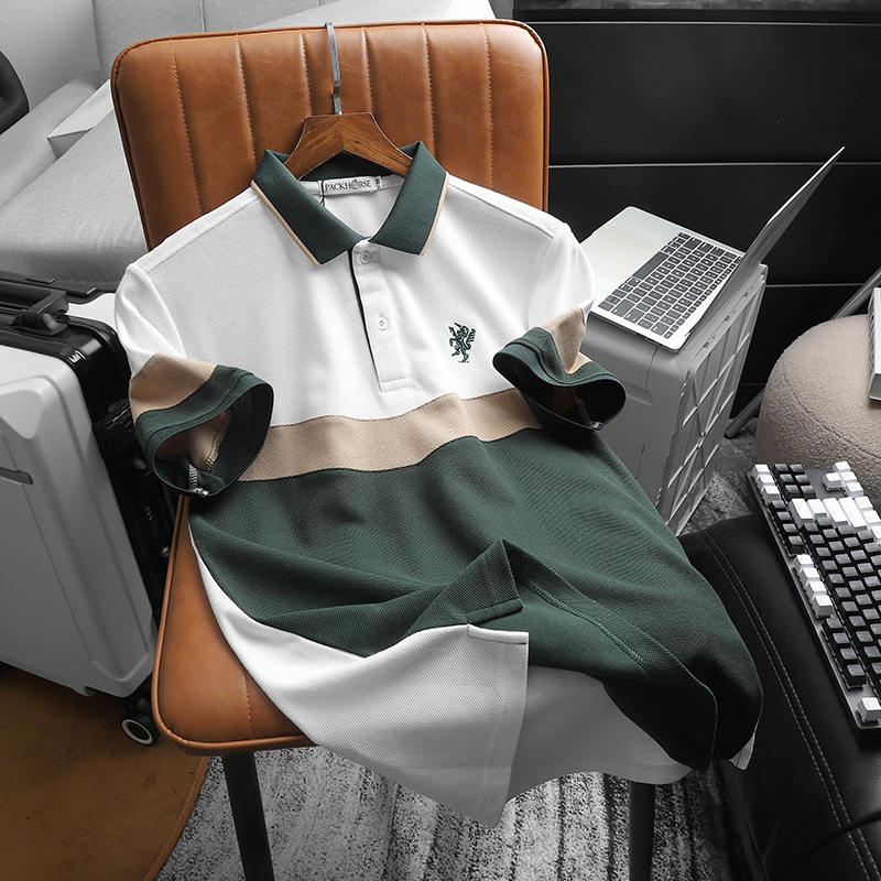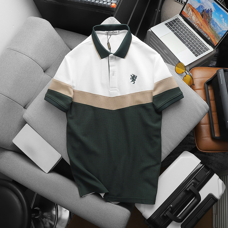 Áo thun nam có cổ thêu thêu logo phối ba màu là một sản phẩm chất lượng với thiết kế đơn giản nhưng không kém phần phong cách
