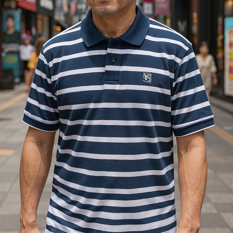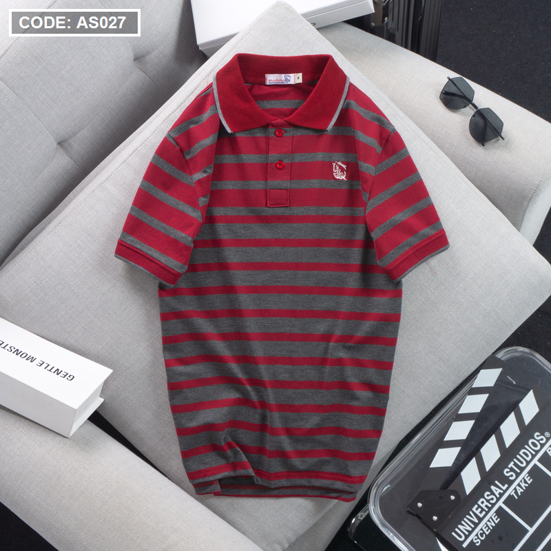 Áo Thun Polo Sọc Ngang Nam Cổ Phối Bo Thêu Logo