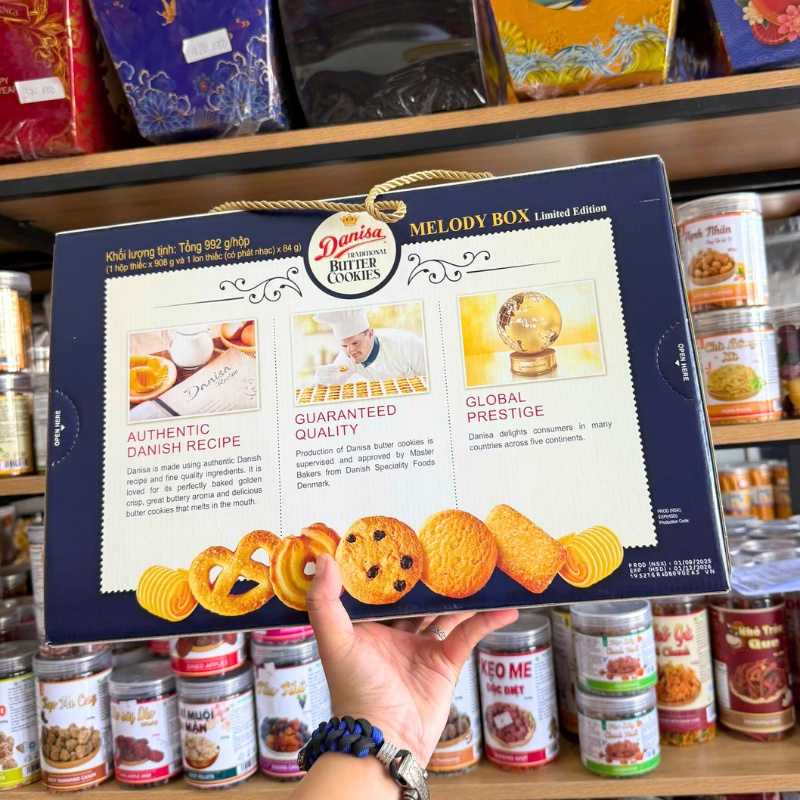 Bánh Danisa Gold Hộp Thiếc – Bánh Quy Bơ Danisa Bản Limitied Edition 992g/Hộp (1 Hộp Thiếc x 908g + 1 Lon Thiếc Có Phát Nhạc 84g)