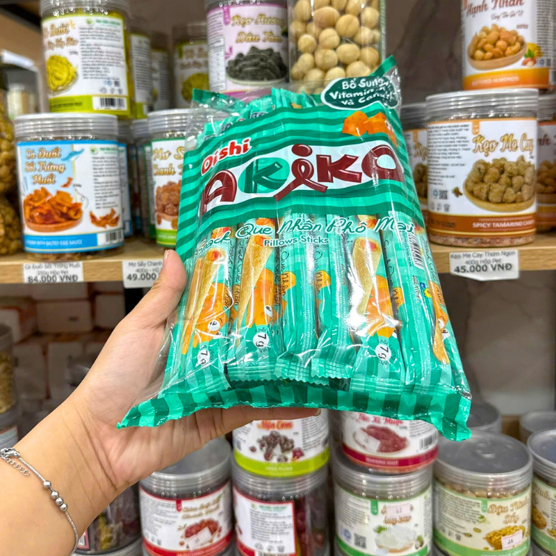 Bánh Que Kem OISHI AKIKO Nhân Phô Mai 140g – Màu Xanh Rêu
