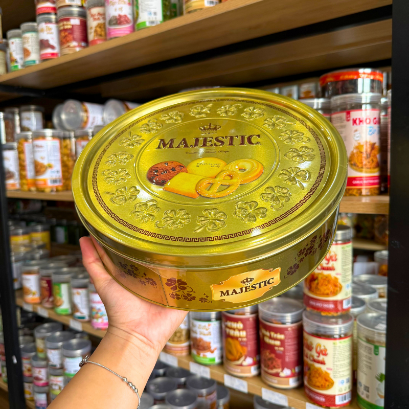 Bánh Quy Hộp Thiếc MAJESTIC Hộp Tròn Đồng Tiền Vàng 382g