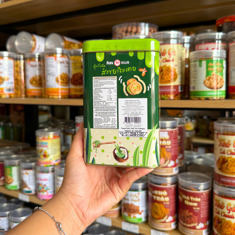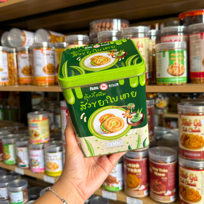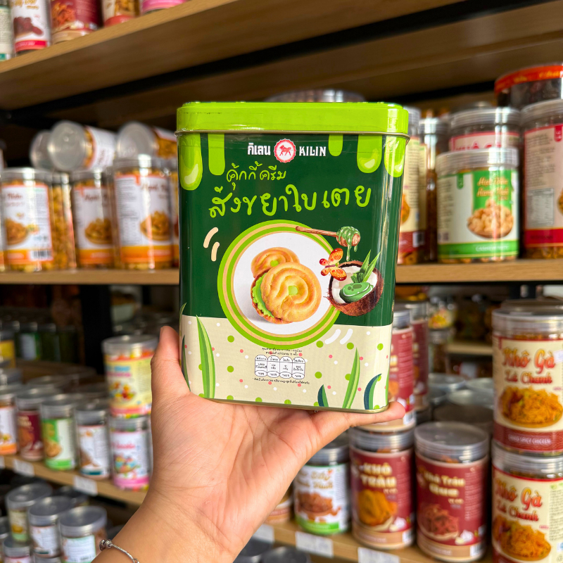 Bánh Quy Nhân Kem Dừa Lá Dứa Hộp Thiếc KILIN Thái Lan 400g – Hộp Xanh Lá
