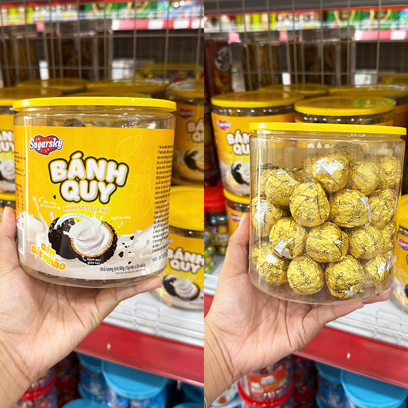 Bánh Quy Nhân Socola Nổ Cắn Bột Nhão Sugarsky 500g – Hộp Vàng