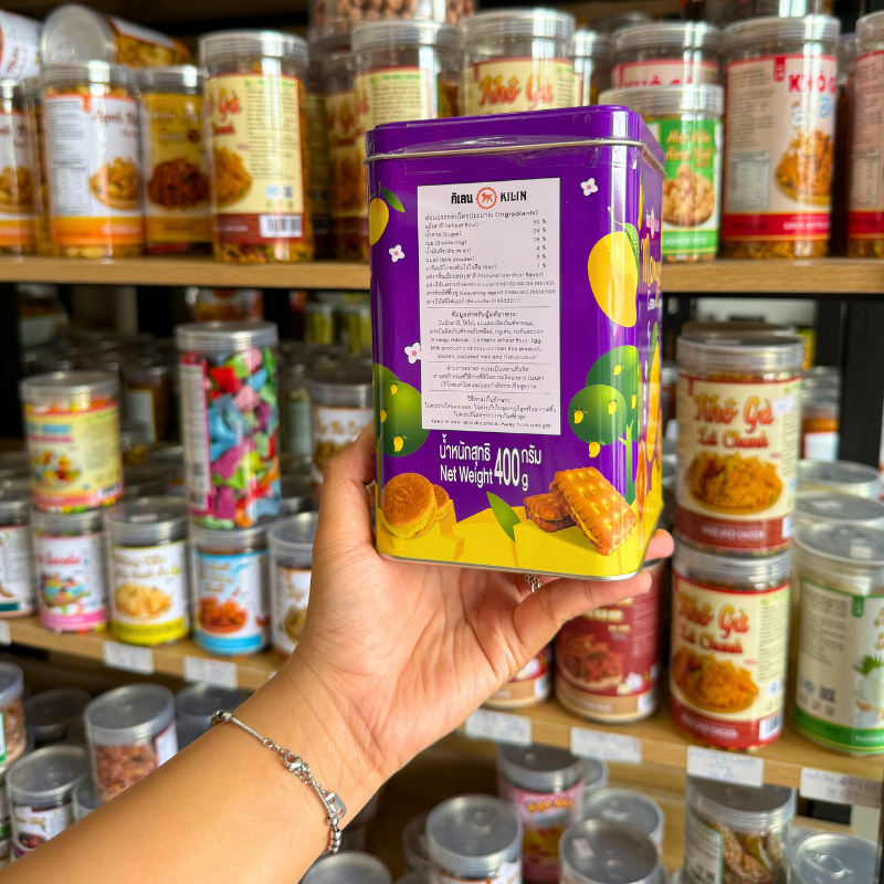 Bánh Quy Nhân Xoài Hộp Thiết Kilin Thái Lan 400g – Bánh Quy Nhân Xoài Hộp Thiết Tím