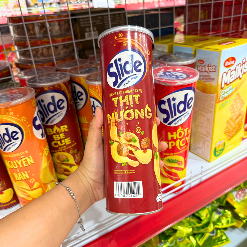 Bánh Snack Khoai Tây Lát Slide Vị Thịt Nướng – Bánh Slide Khoai Tây Màu Nâu 145Gr (Hộp To)