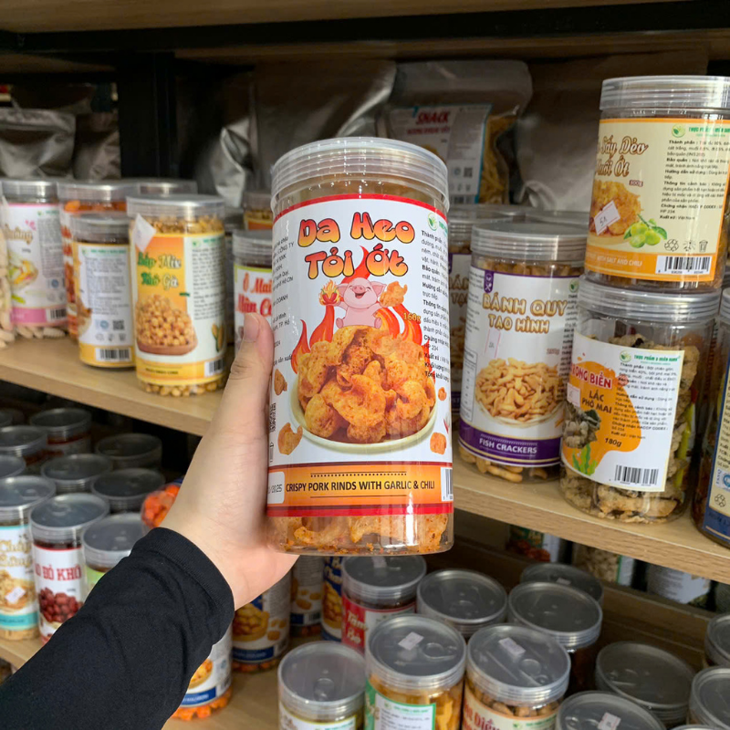 Bỏ sỉ da Heo Tỏi Ớt Thơm Ngon Giòn Rụm 160g Hộp