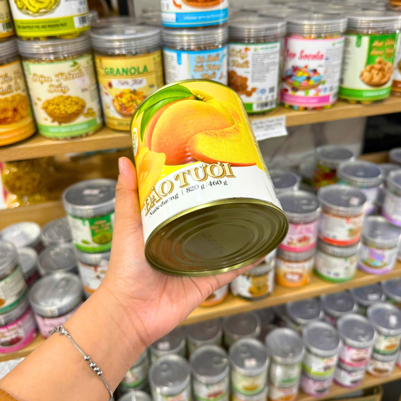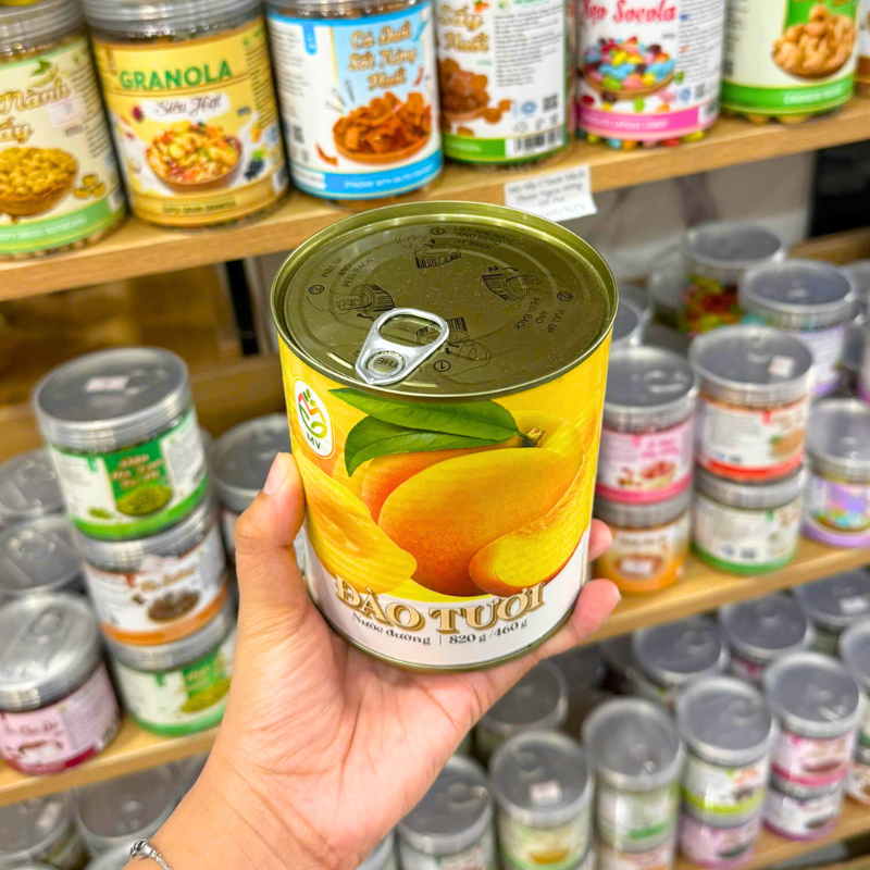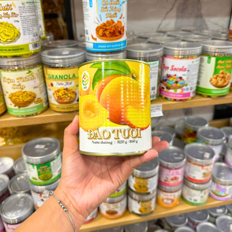 Bỏ sỉ đào Tươi Nước Đường Mv 820g