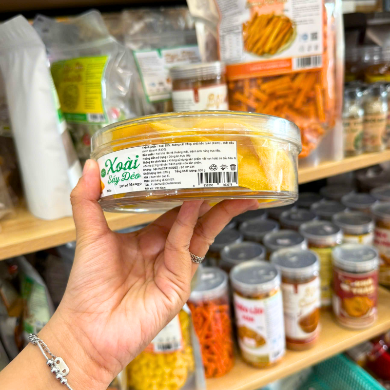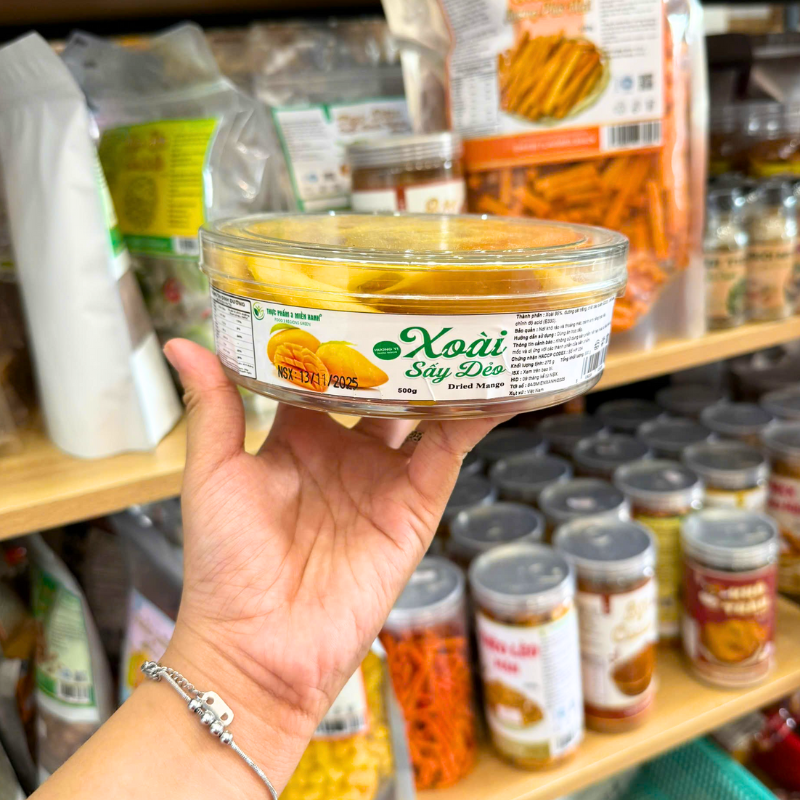 Bỏ sỉ xoài Sấy Dẻo – Xoài Xếp Hoa Thơm Ngon 500g – Hộp Tròn