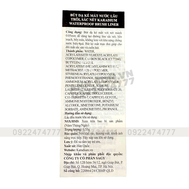 Bút Kẻ Mắt Karadium Waterproof Brush Liner Lâu Trôi Hàn Quốc