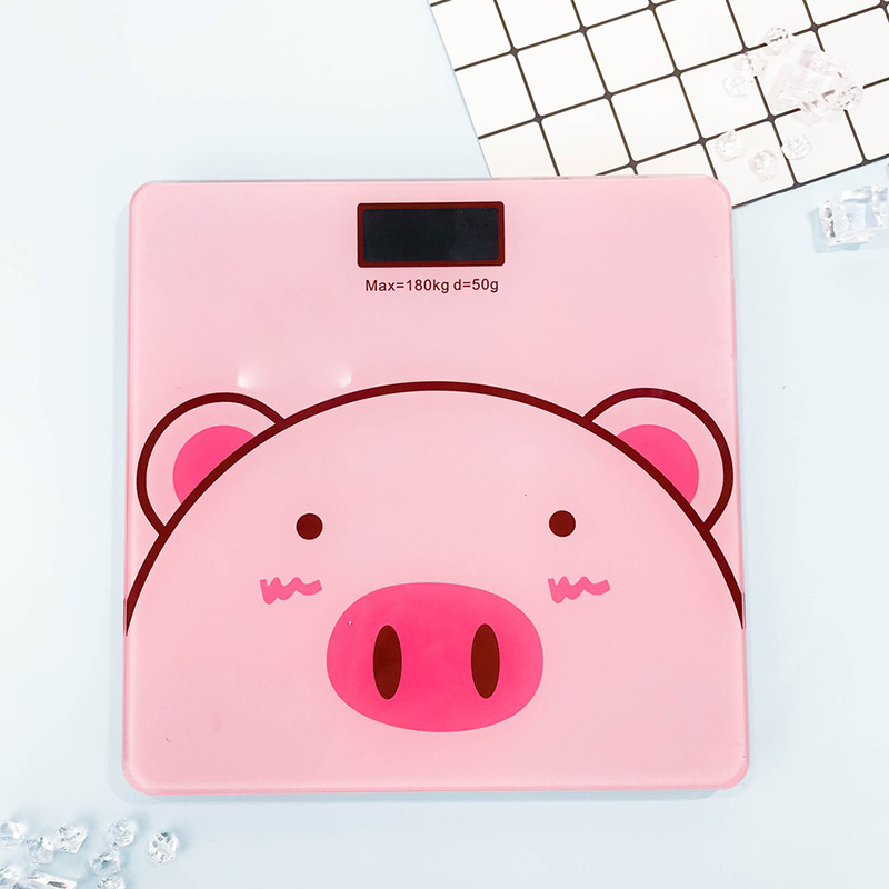 Cân Điện Tử Sức Khỏe Gia Đình Hình Heo Hồng Và Gấu Dâu Trong Tải Tối Đa 180kg 28x28cm