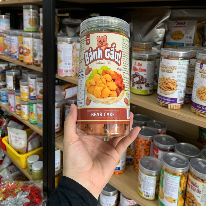 Chuyên sỉ bánh Gấu Mix 3 Vị Thơm Ngon Hộp Pet 420g (Chùm Ngây- Socola – Truyền Thống) Hộp
