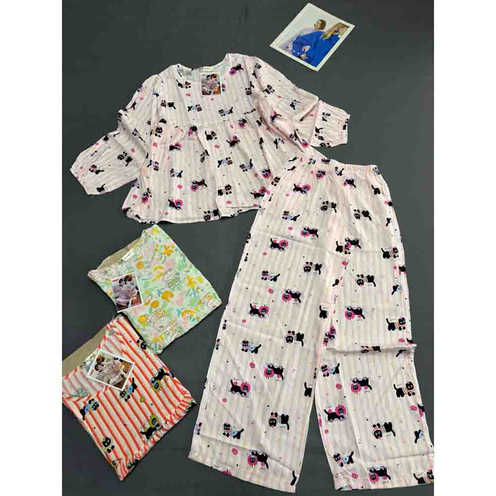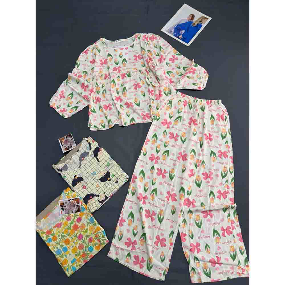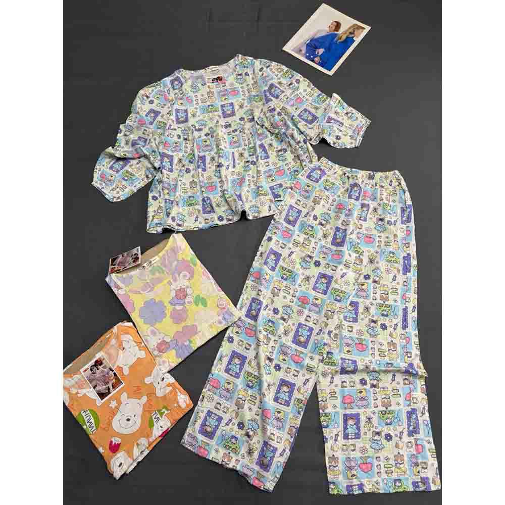 Chuyên sỉ đồ Bộ Nữ Áo Babydoll Tay Dài Quần Dài Họa Tiết Đáng Yêu Vải Tole Thấm Hút Tốt Size 45-62kg