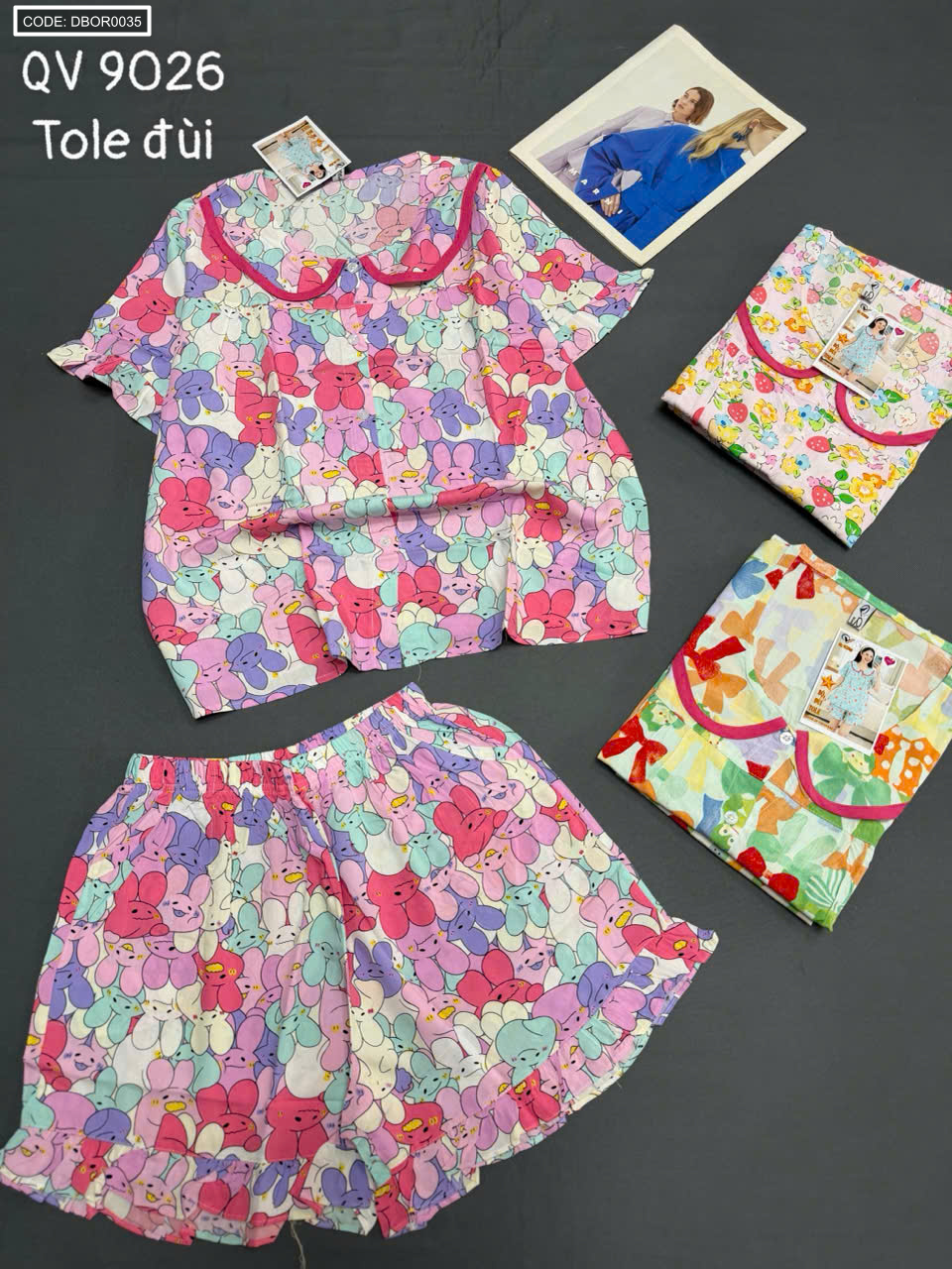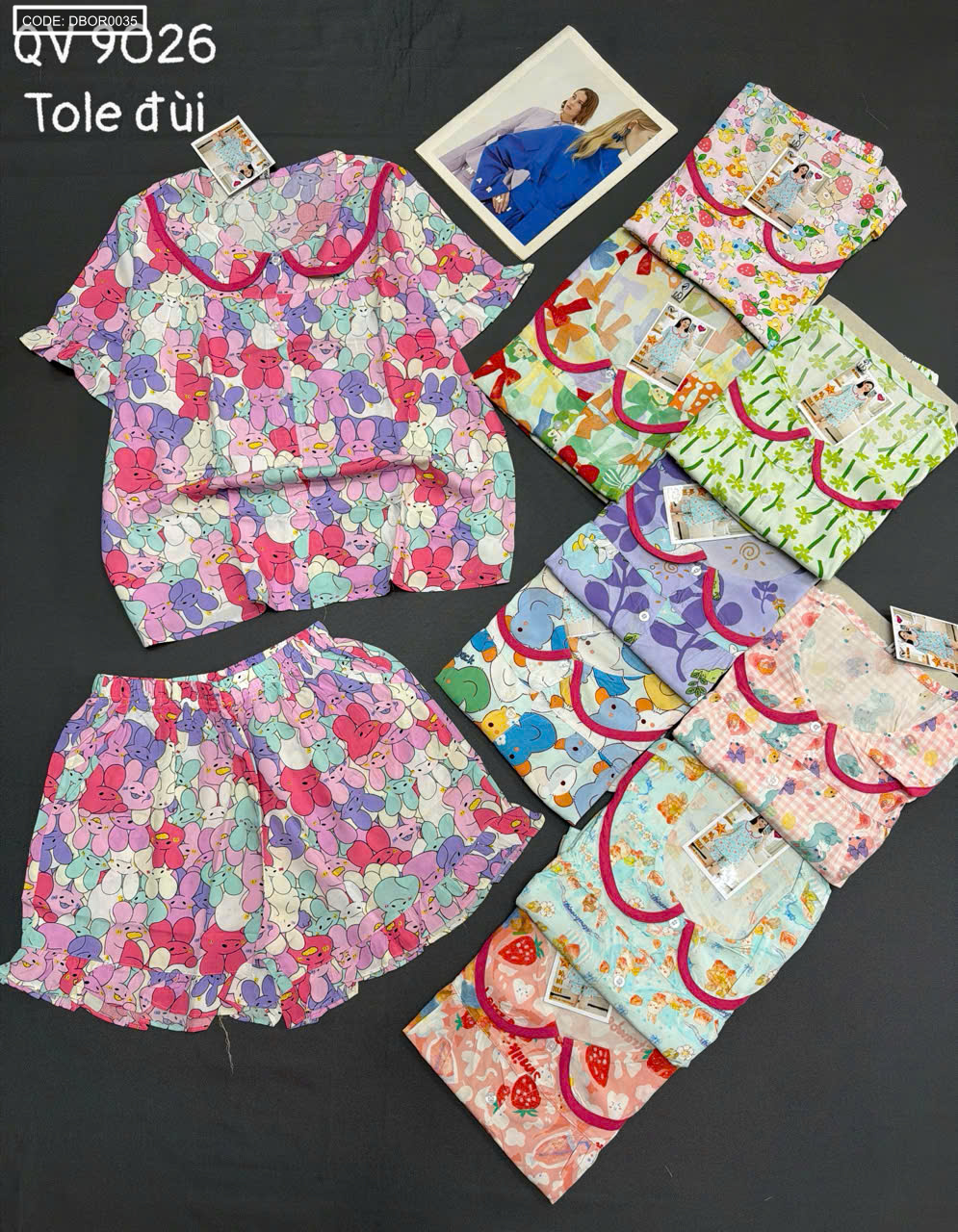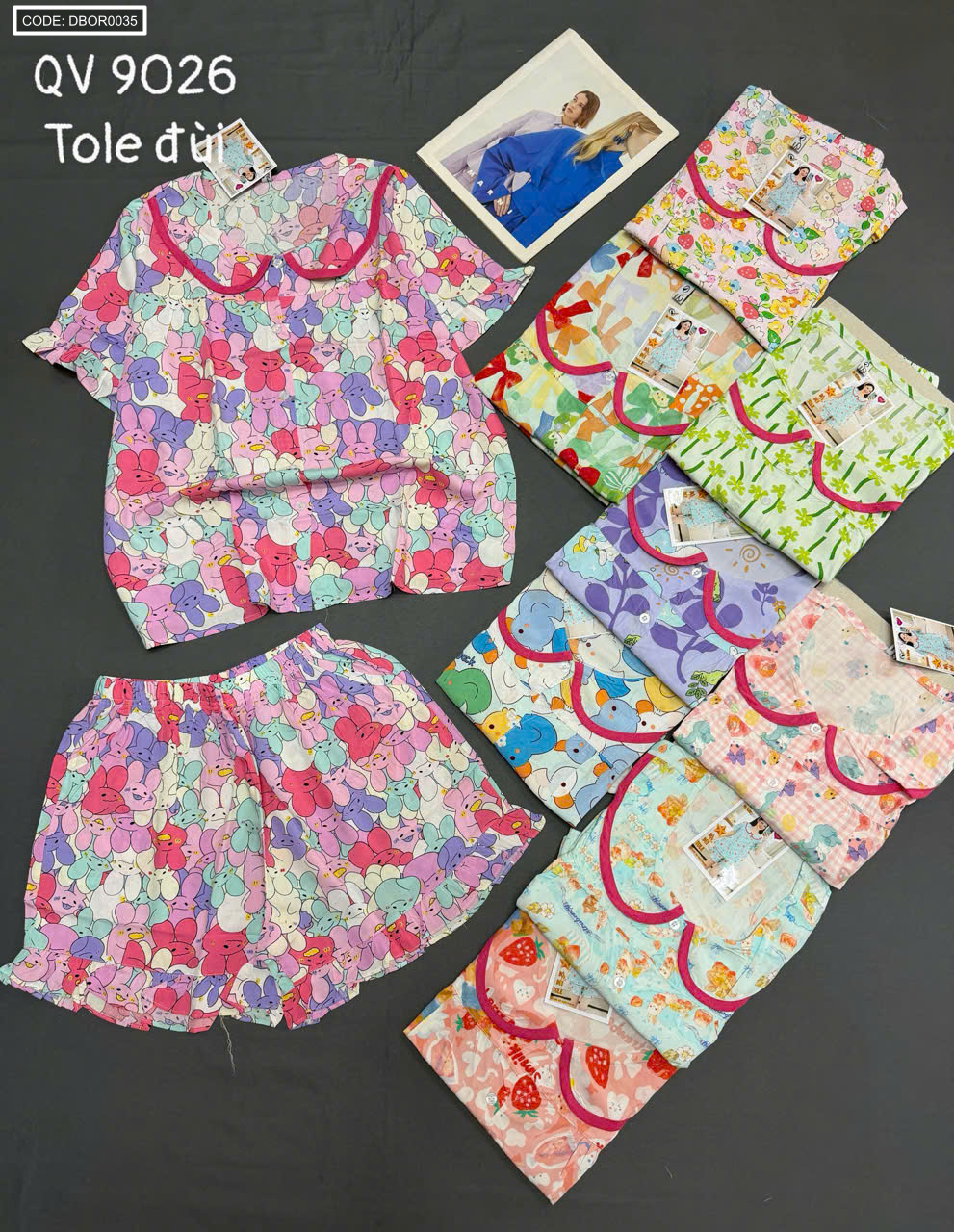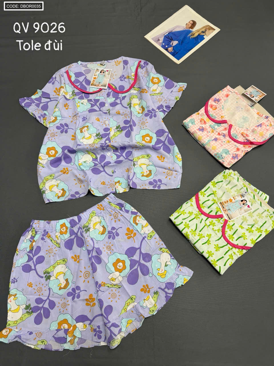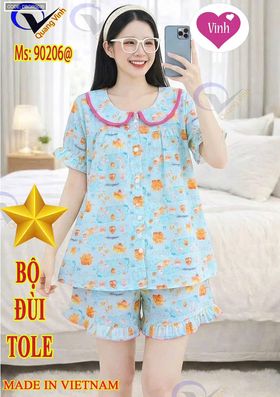 Chuyên sỉ đồ Bộ Nữ Tay Ngắn Quần Đùi Vải Tole QV 9026