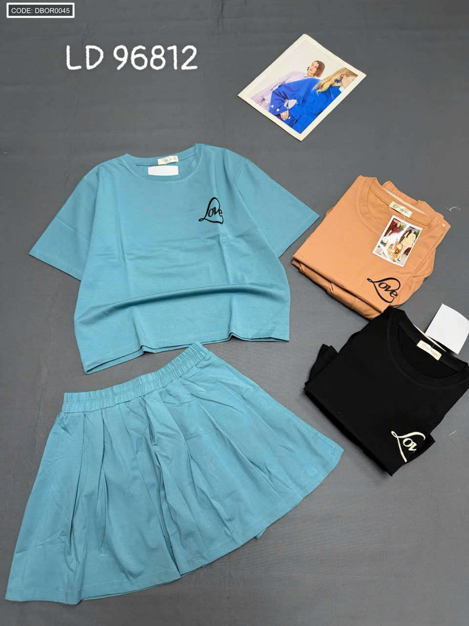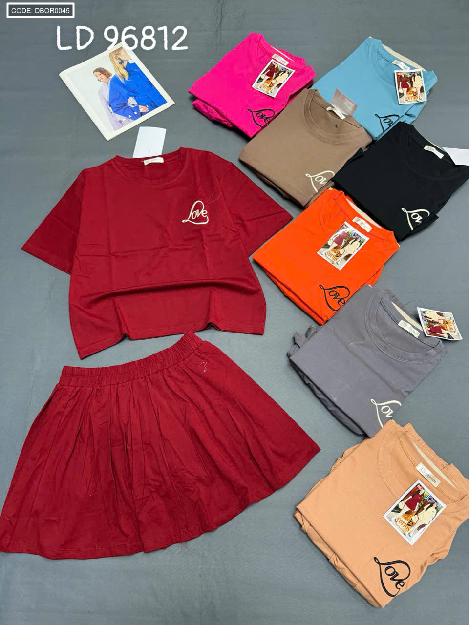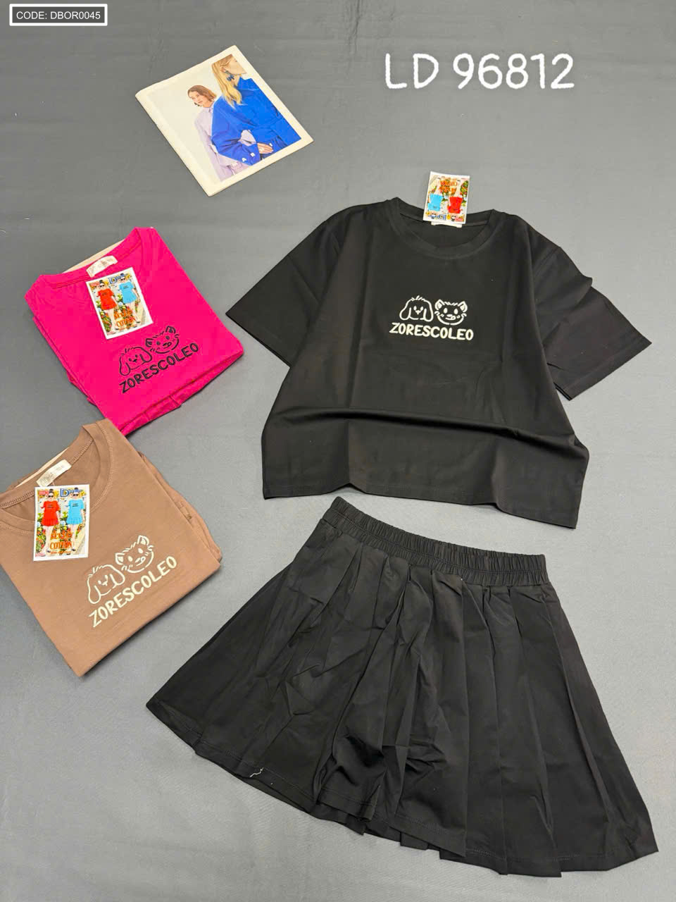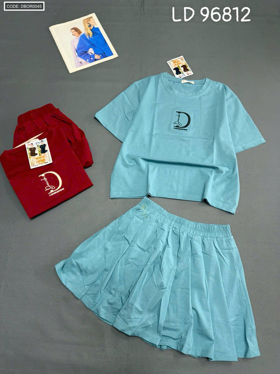 Chuyên sỉ đồ bộ nữ tay ngắn quần váy LD 96812 thun cotton 4 chiều