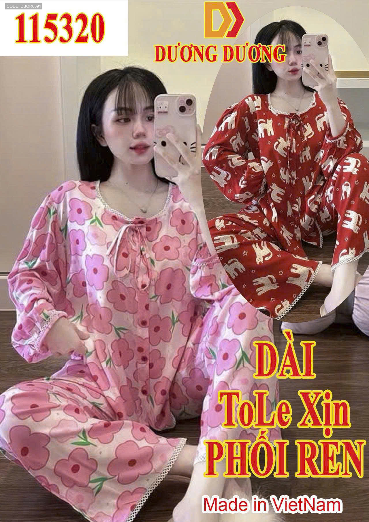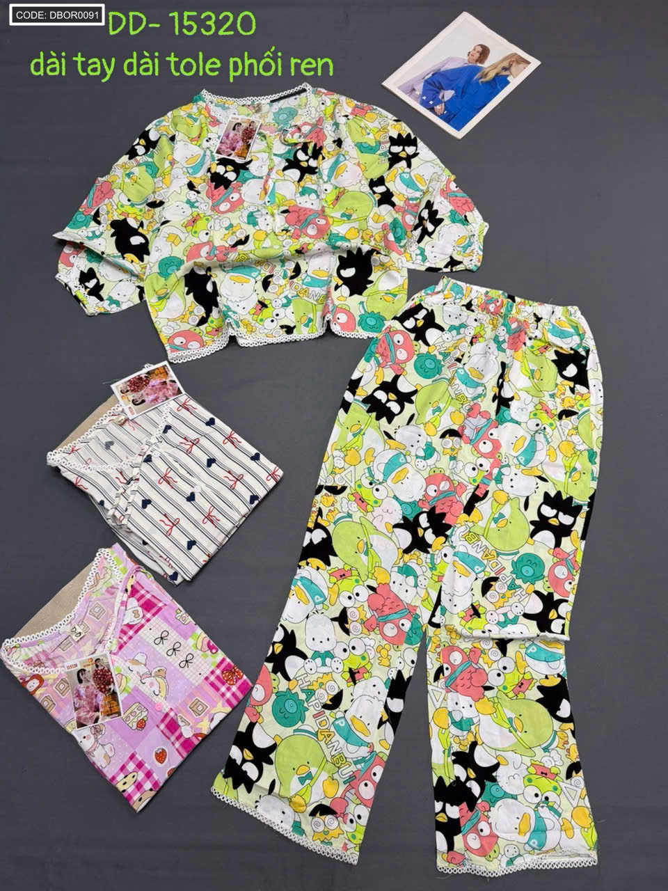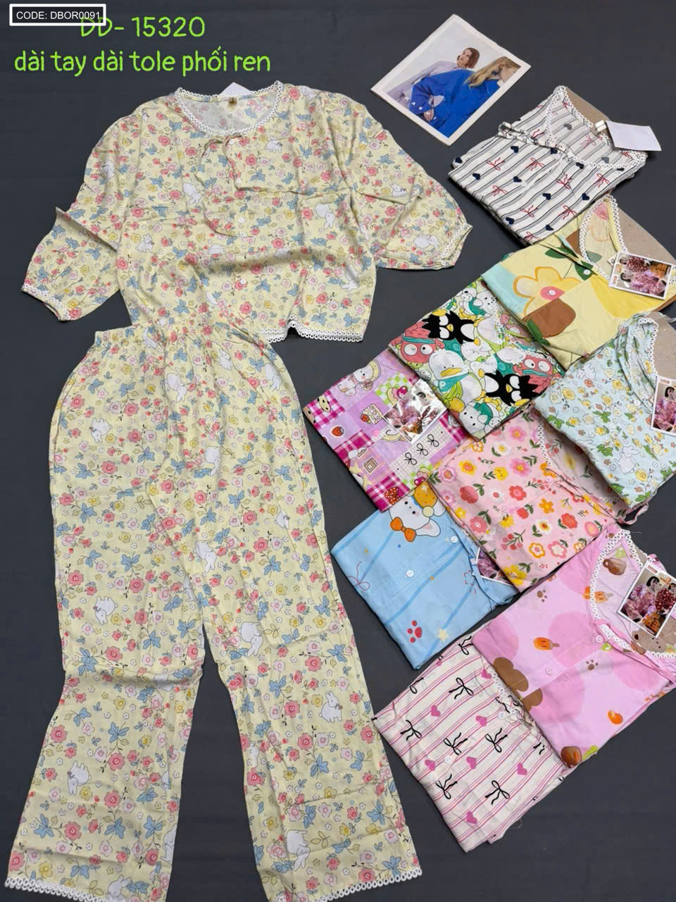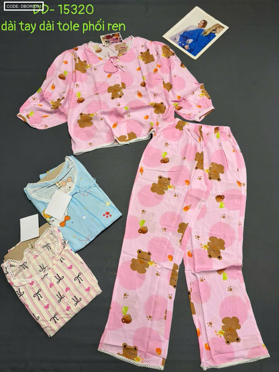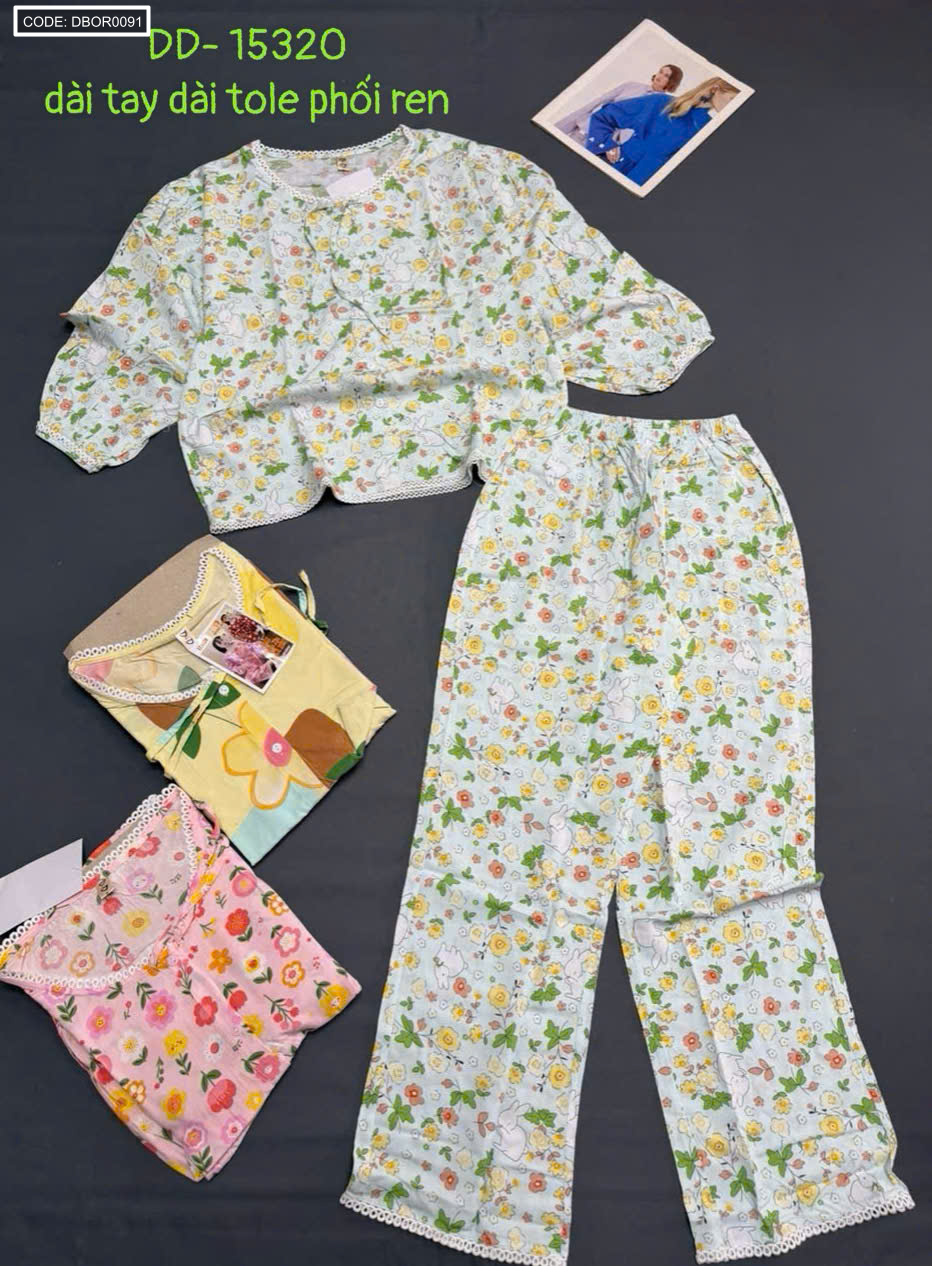Chuyên sỉ đồ bộ tay dài quần dài vải tole xin phối ren DD15320