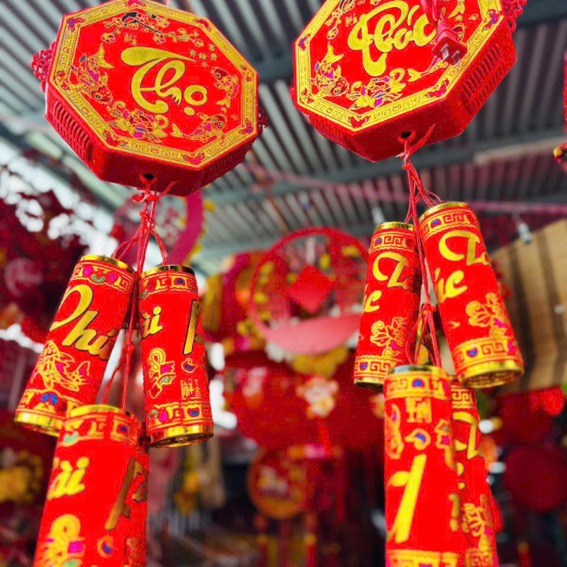 Tết mà thiếu cái “không khí rộn ràng” thì thấy trống trống sao đó nha 😄 Treo em này lên là góc nhà/cửa tiệm đỏ rực – nổi bật – đúng vibe Tết, nhìn phát biết “Tết tới nơi rồi!” luôn á.
