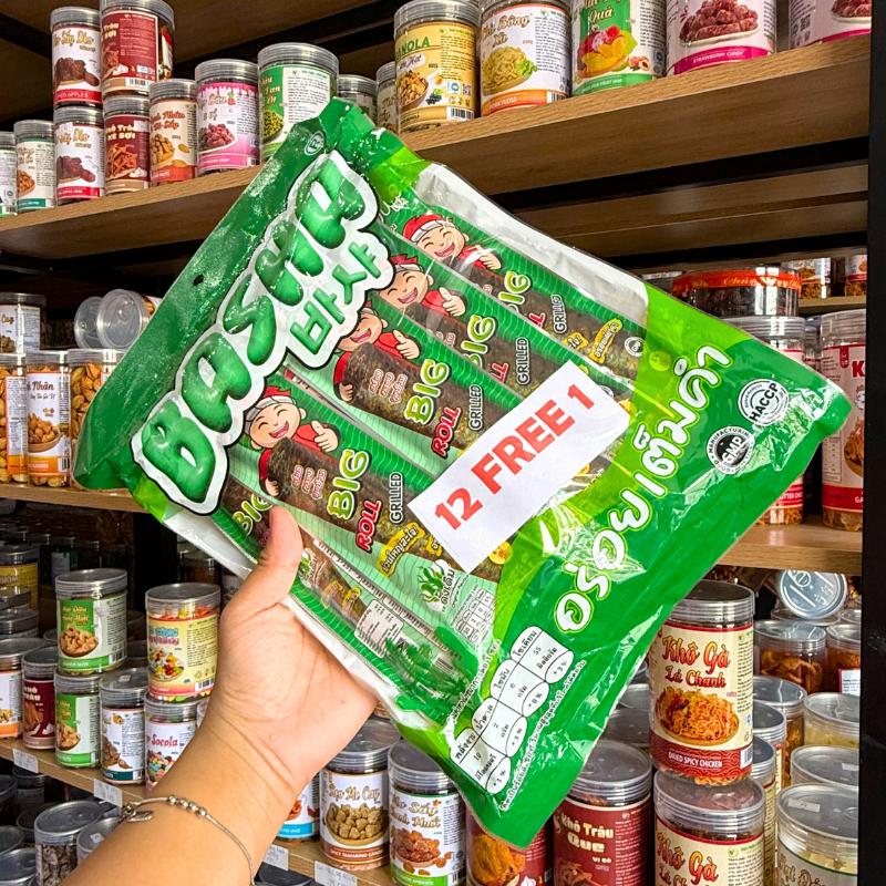 Chuyên sỉ rong Biển BASHA Ăn Liền Bịch Màu Xanh Lá (12 cây tặng 1 cây)