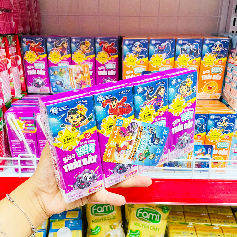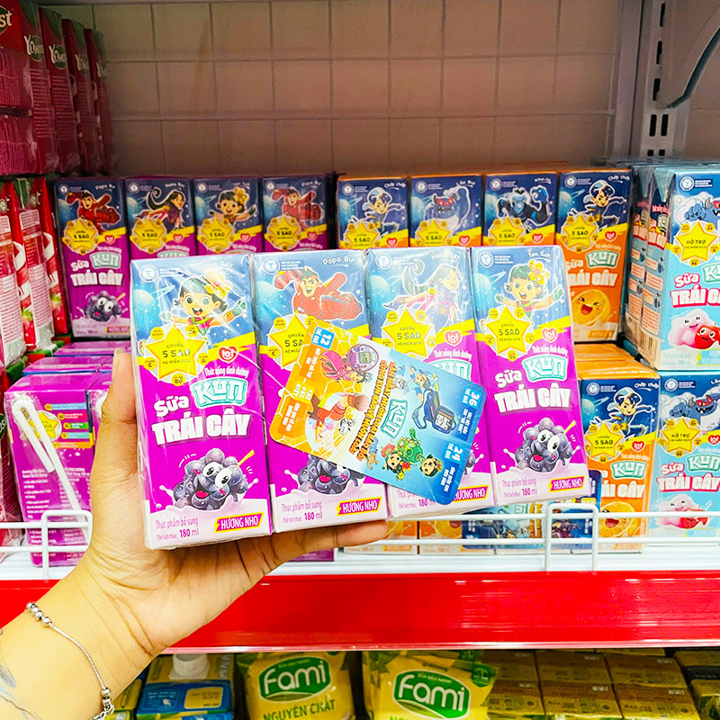 Chuyên sỉ sữa Dinh Dưỡng Trái Cây KUN Hương Nho Lốc 4 Hộp – (180ml/Hộp)
