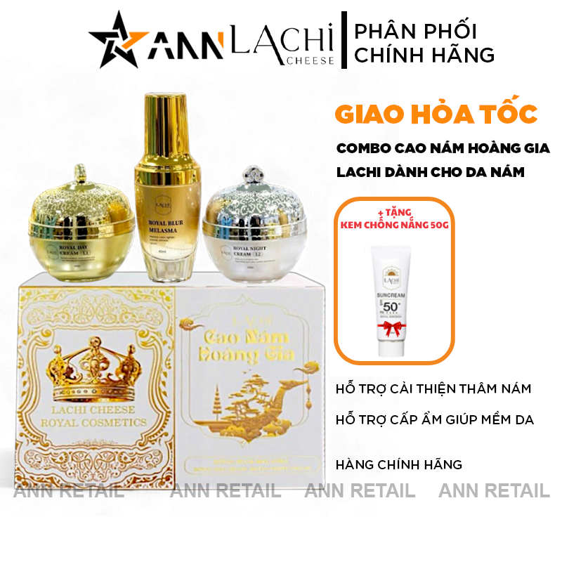 Combo Cao Nám Hoàng Gia Lachi (Serum + Kem Face Ban Ngày + Kem Face Ban Đêm) Giúp Mờ Nám Trắng Da