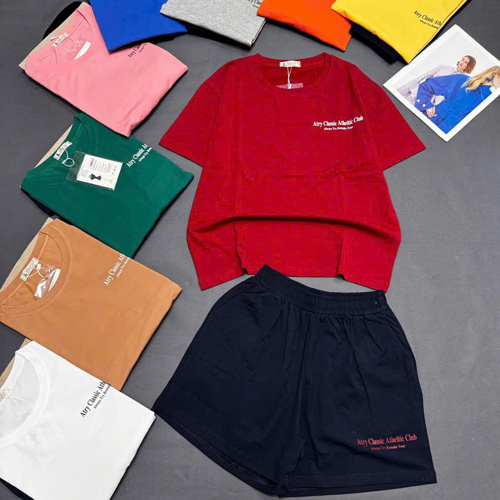 Đồ Bộ Nữ Áo Cổ Tròn Tay Ngắn Quần Đùi Vải Cotton Mịn Mát Size 45-62kg