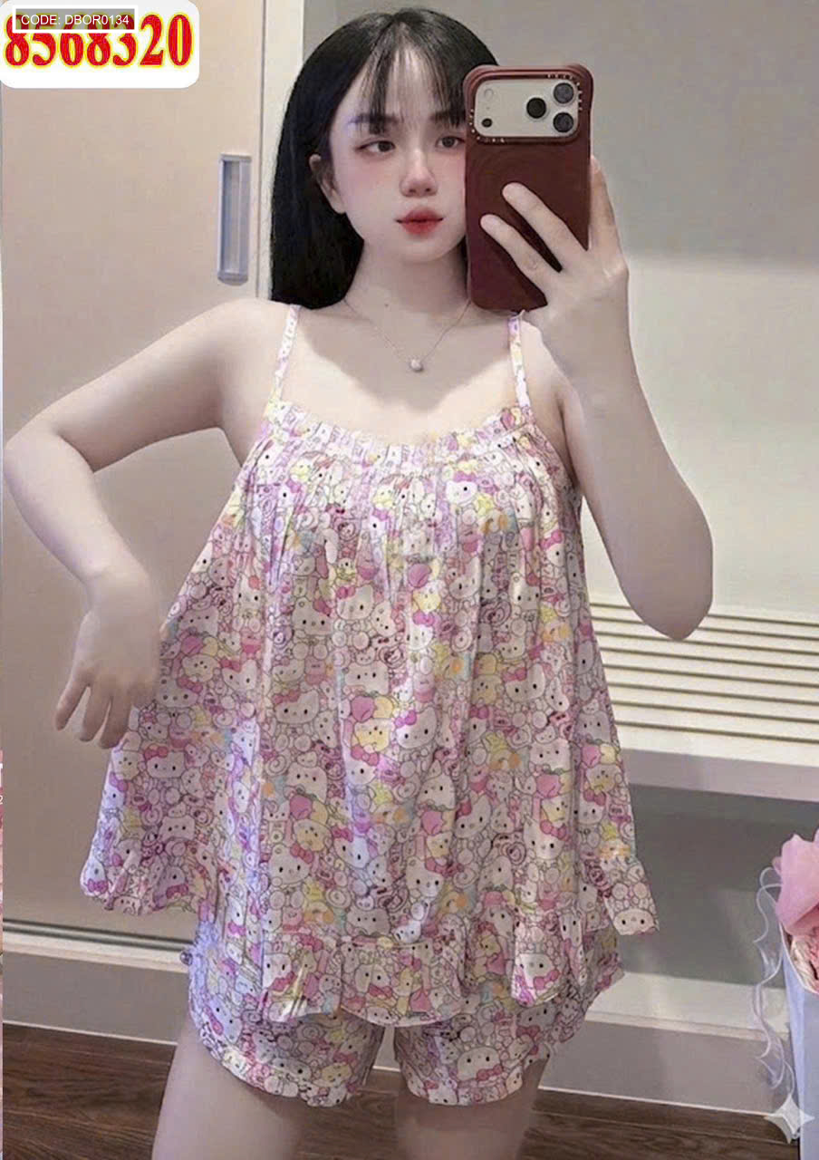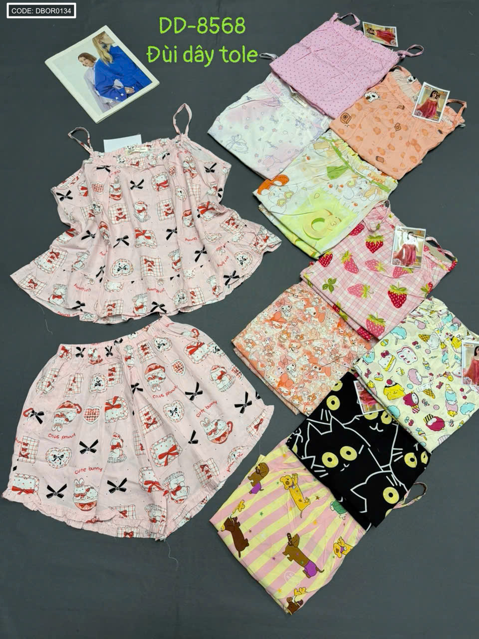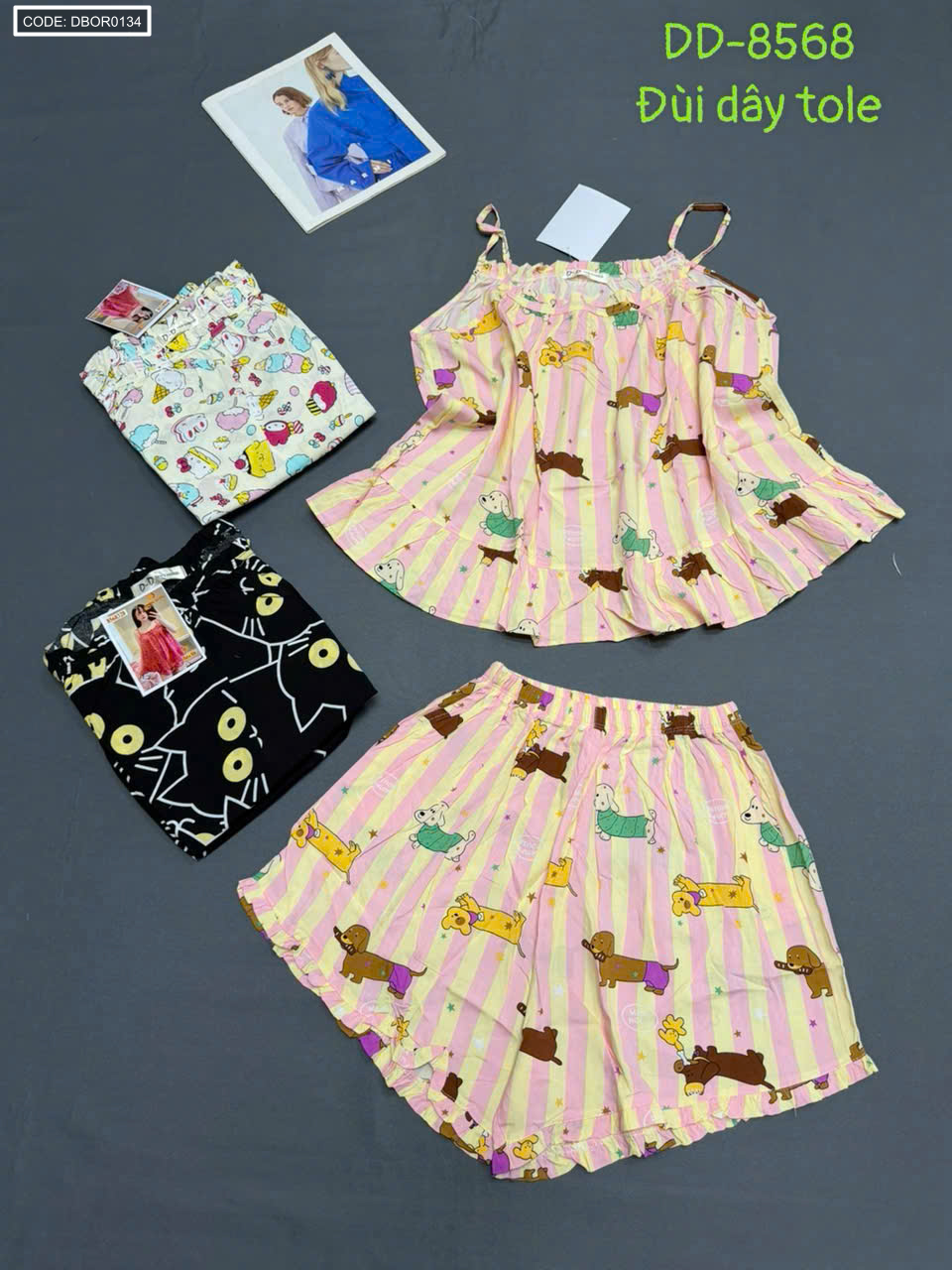 Đồ bộ nữ quần đùi 2 dây vải tole DD-8568