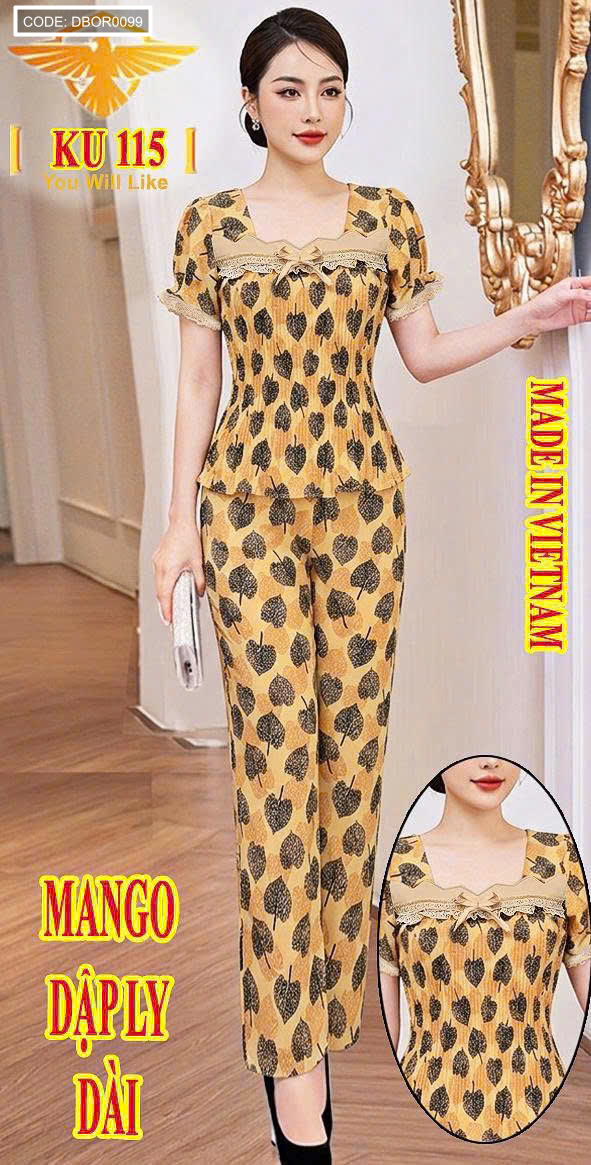Đồ bộ nữ tay con quần dài áo xếp ly KU1526