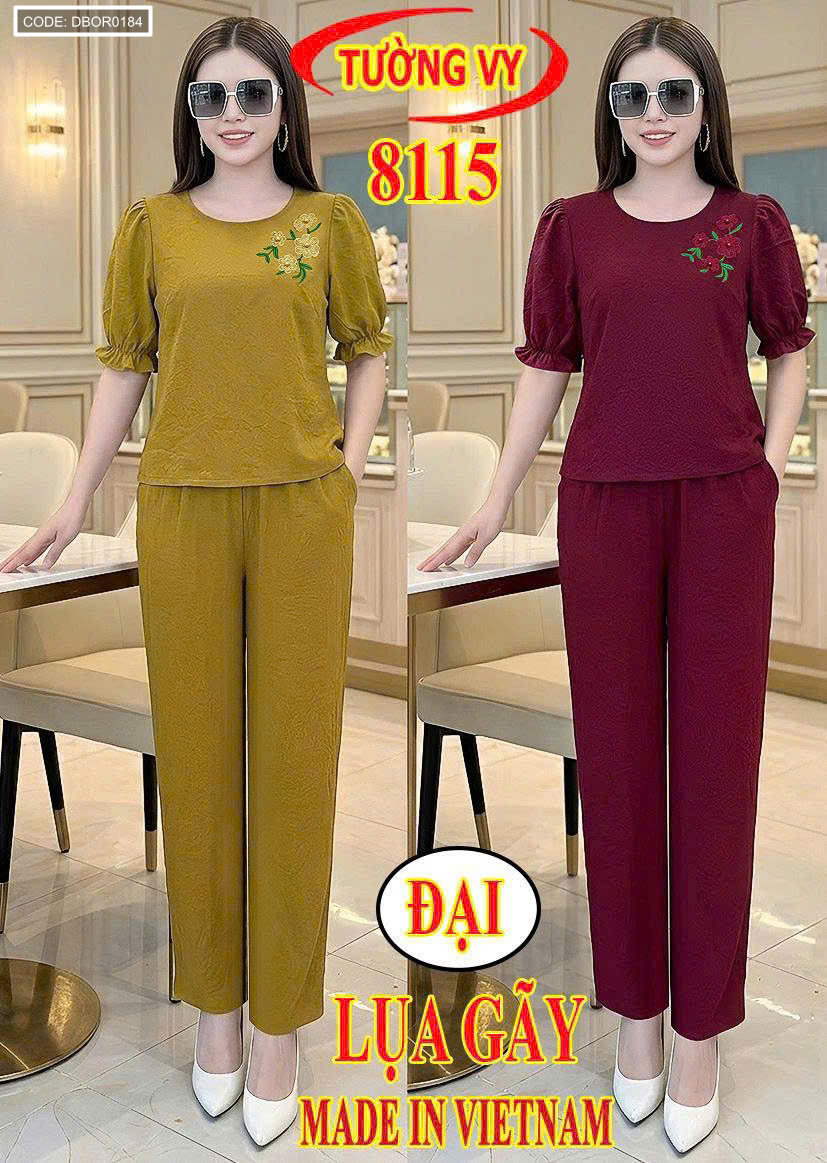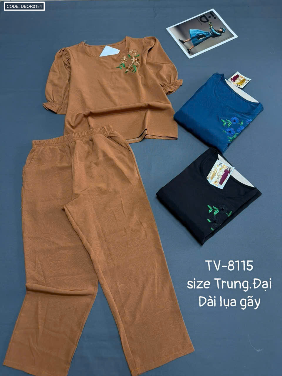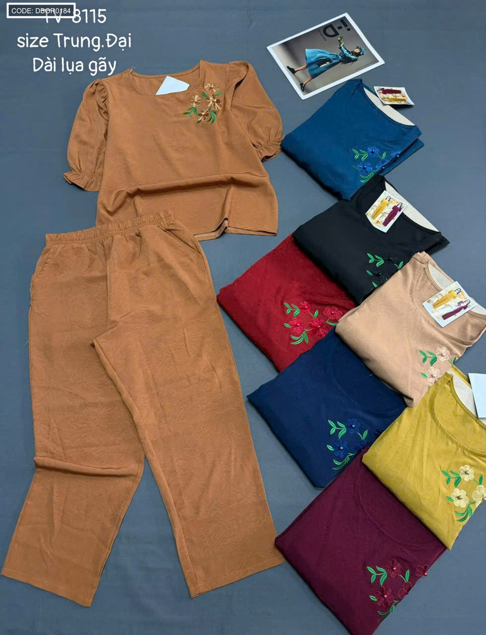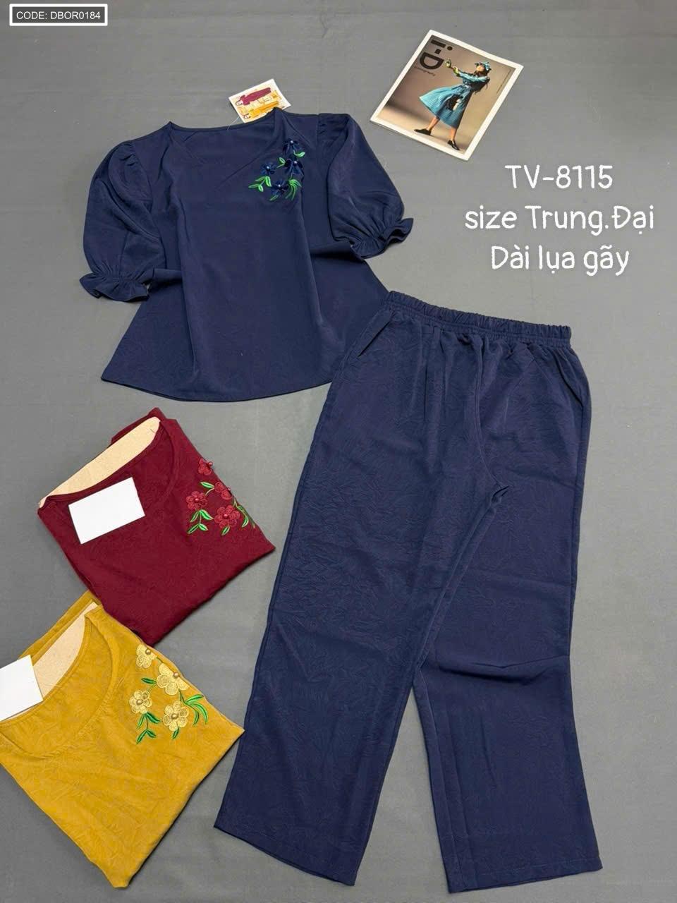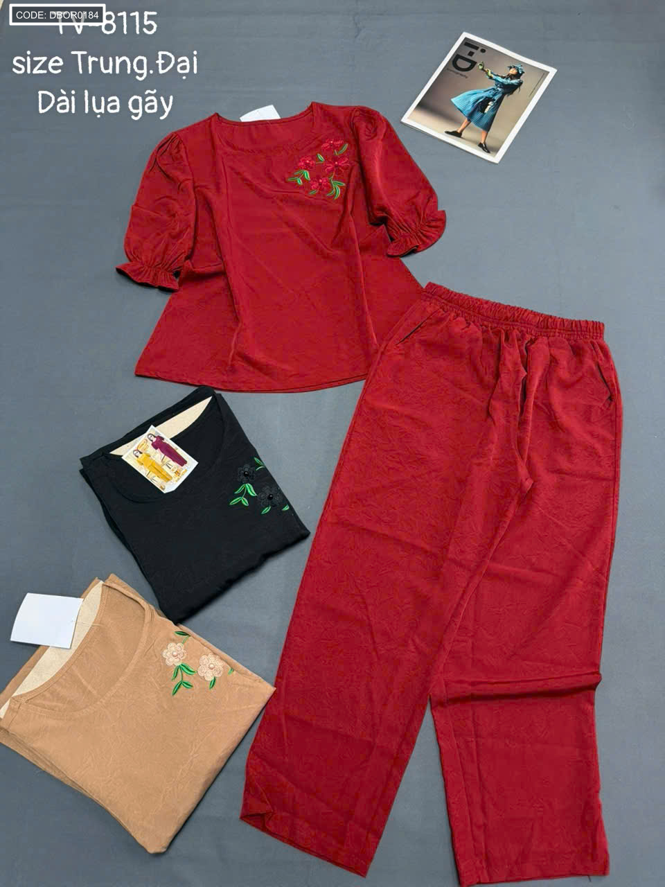Đồ bộ nữ tay ngắn quần dài vải lụa gãy trung niên TV-8115