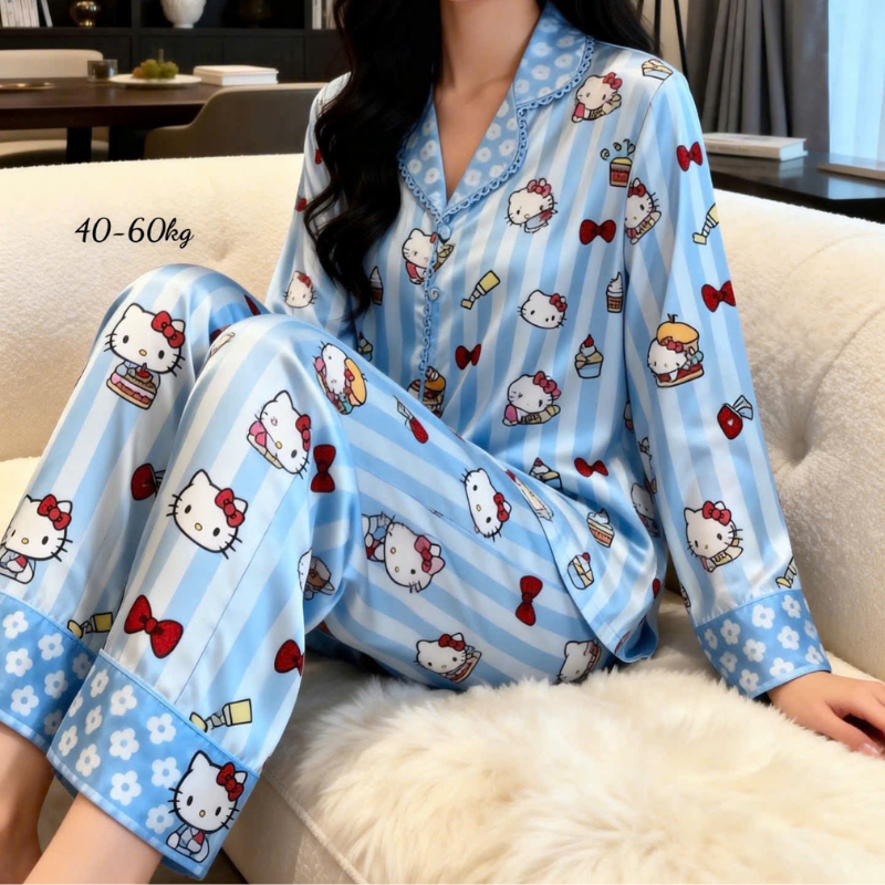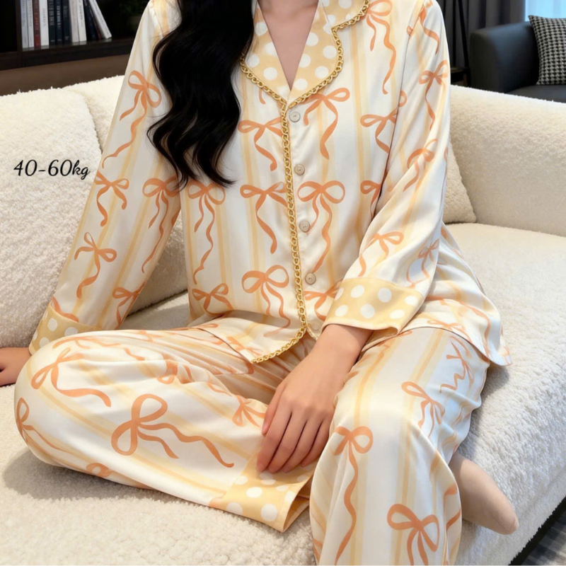 Đồ Bộ Pijama Nữ – Đồ Bộ Tay Dài Quần Dài Viền Ren Họa Tiết Size Thường 40-60kg