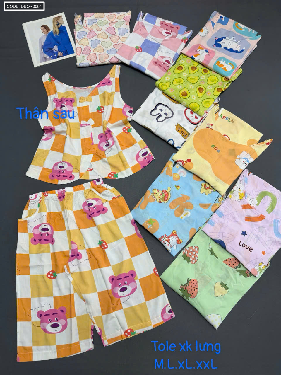 Đồ bộ sát nách 3 nơ sau quần lững