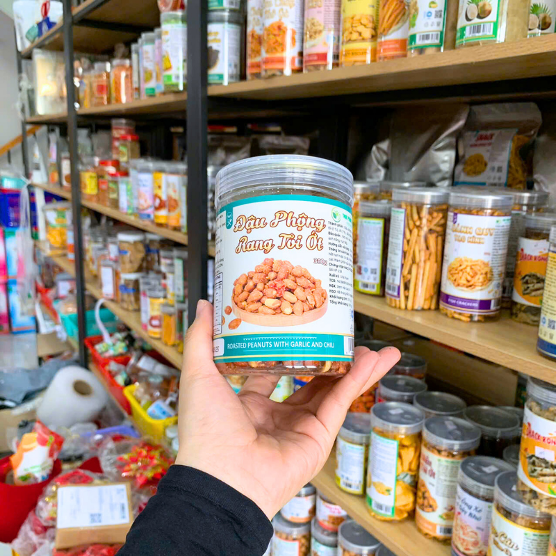 Giá sỉ đậu Phộng Rang Tỏi Ớt Thơm Ngon 300g – Hộp Pet