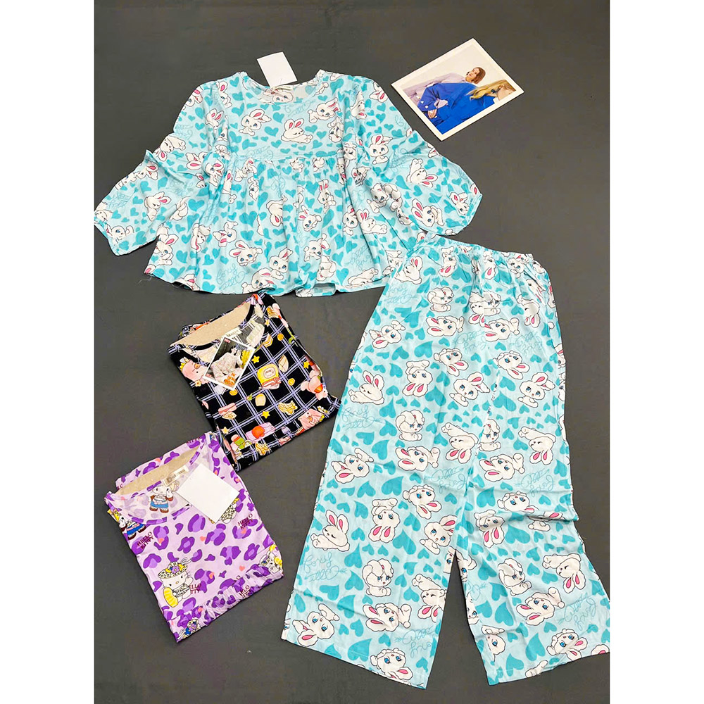 Giá sỉ đồ Bộ Nữ Áo Babydoll Tay Dài Quần Dài Họa Tiết Sang Trọng Vải Tole Mịn Mát Size 45-62kg