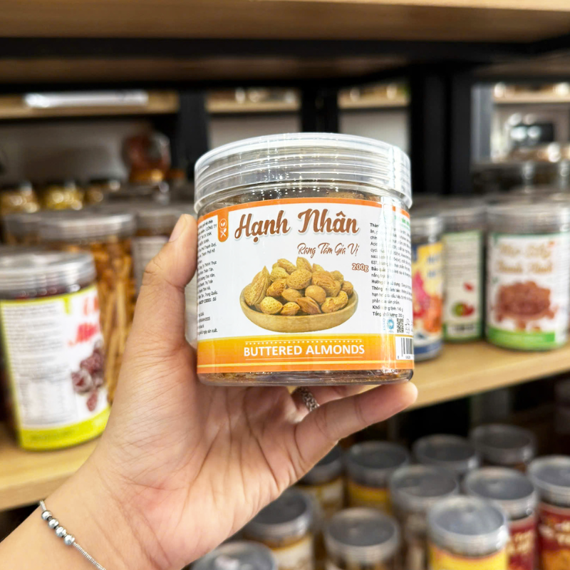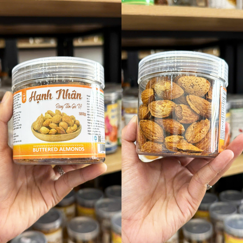 Giá sỉ hạnh Nhân Sấy Tẩm Gia Vị – Hạnh Nhân Rang Bơ Loại Vỏ Dày Mini Thơm Ngon 200g – Hũ Pet