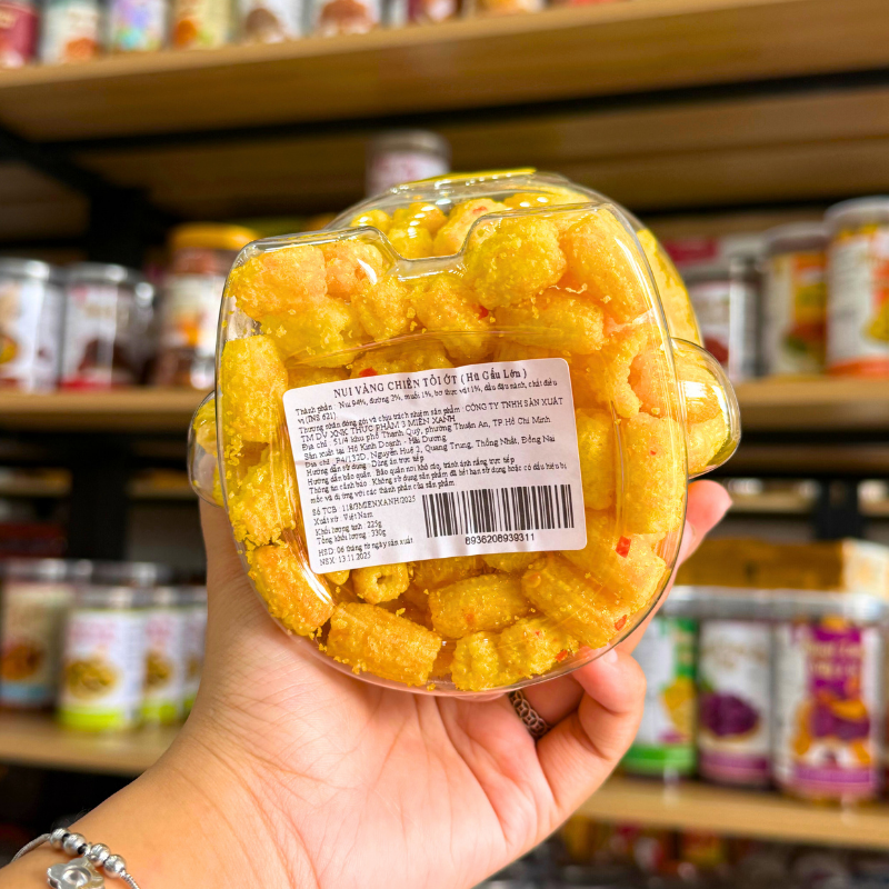 Giá sỉ nui Vàng Chiên Tỏi Ớt Đậm Vị 330g – Hũ Gấu Lớn