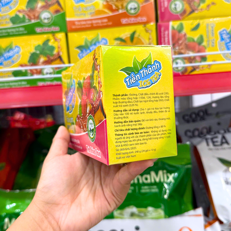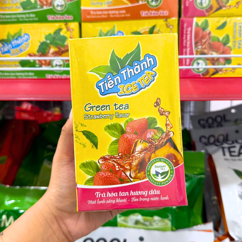 Giá sỉ trà Xanh Hoà Tan Tiến Thành Hương Dâu 240g
