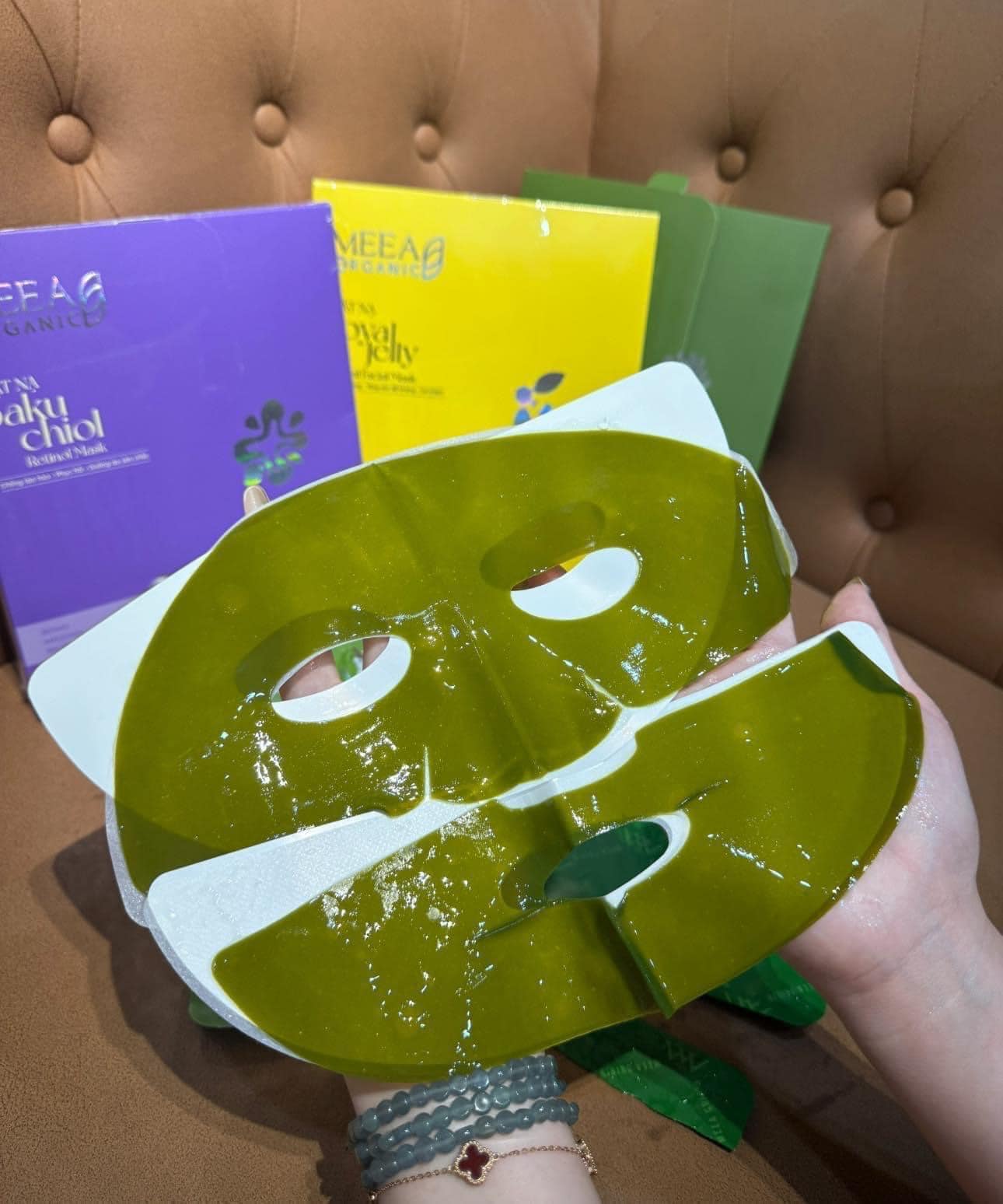 Mặt Nạ Thạch Collagen Meea Organic Màu Xanh Ngãi Cứu Mugwort Mask Hộp 5 Miếng