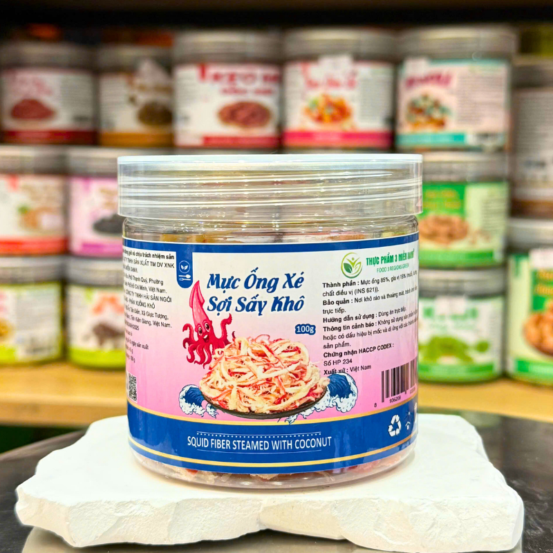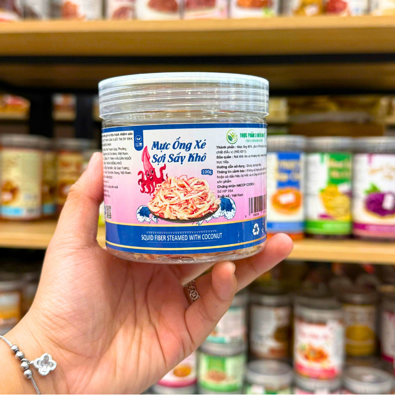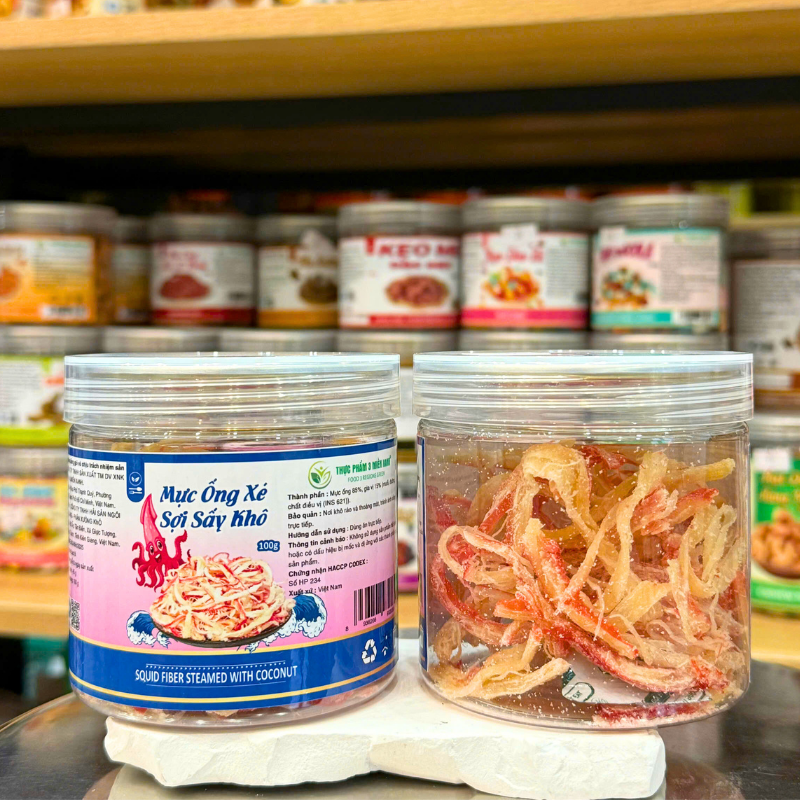 Mực Ống Xé Sợi Sấy Khô (Mực Dừa) Mini 100g – Hộp Pet