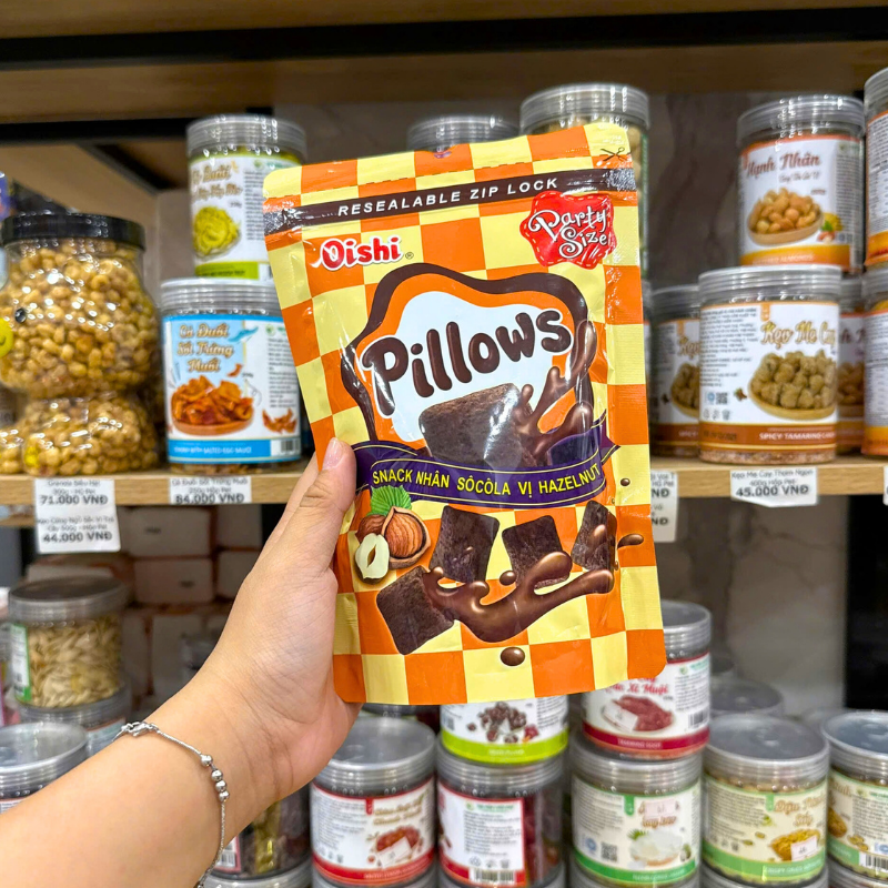 Nguồn sỉ bánh Quy Nhân Kem Socola OISHI PILLOWS Vị Hazelnut 80g