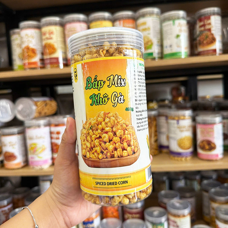 Nguồn sỉ bắp Giòn Gà Cay (Bắp Mix Khô Gà) 400g – Hộp Pet