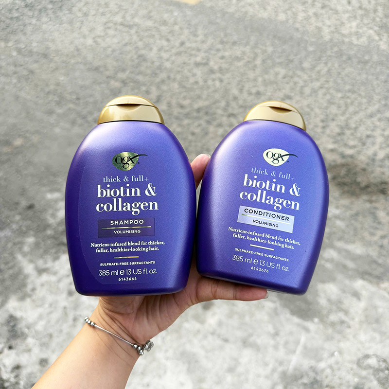 Nguồn sỉ bộ Dầu Gội Xả OGX Thick & Full + Biotin & Collagen Tím 385ml