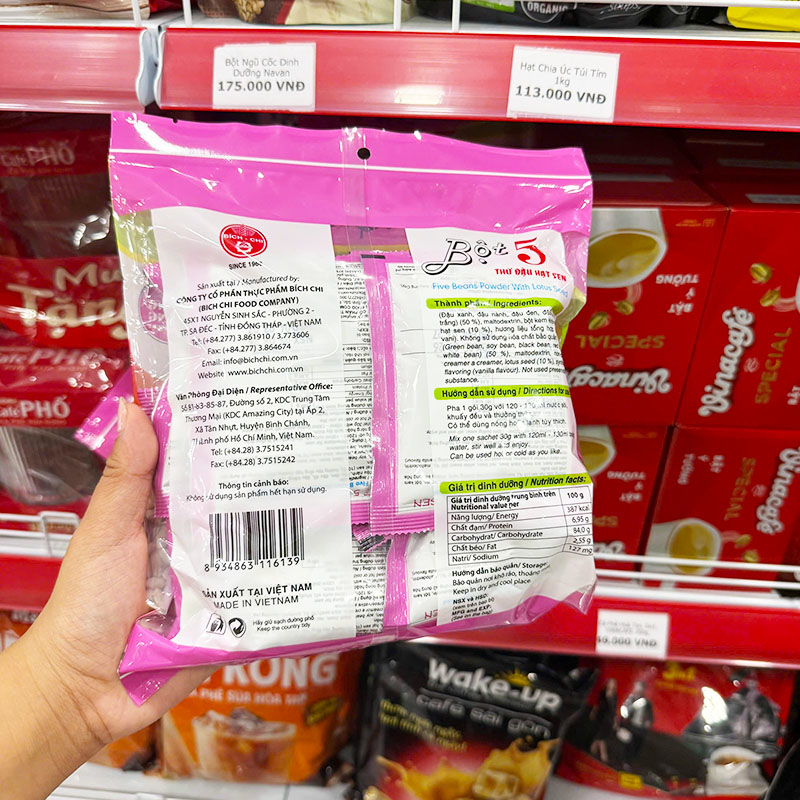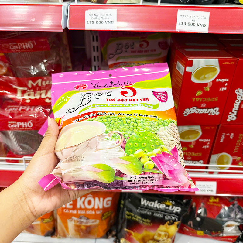 Nguồn sỉ bột 5 Thứ Đậu Hạt Sen Bích Chi Không Đường 350g – Bịch Màu Hồng