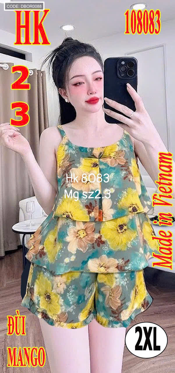 Nguồn sỉ đồ bộ nữ áo 2 dây quần đùi mango Hk 8083
