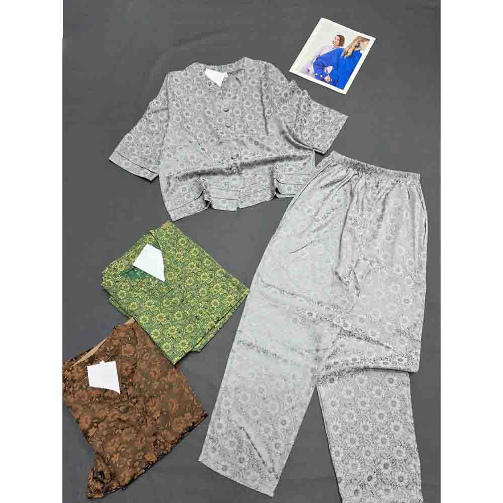 Nguồn sỉ đồ Bộ Nữ Trung Niên Áo Tay Lở Quần Dài Họa Tiết Sang Trọng Vải Gấm Mịn Mát Size 45-62kg