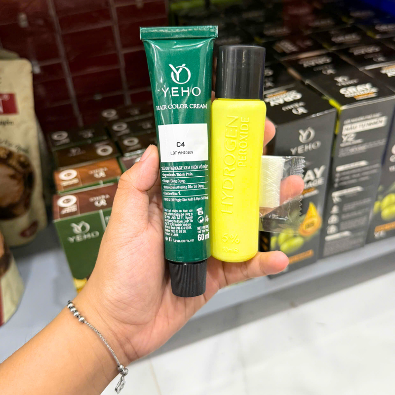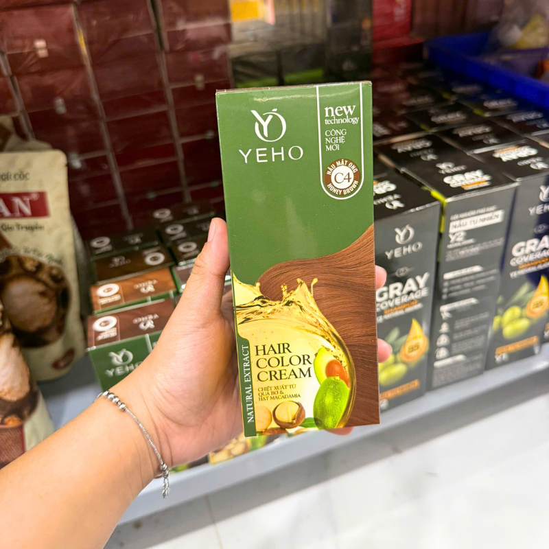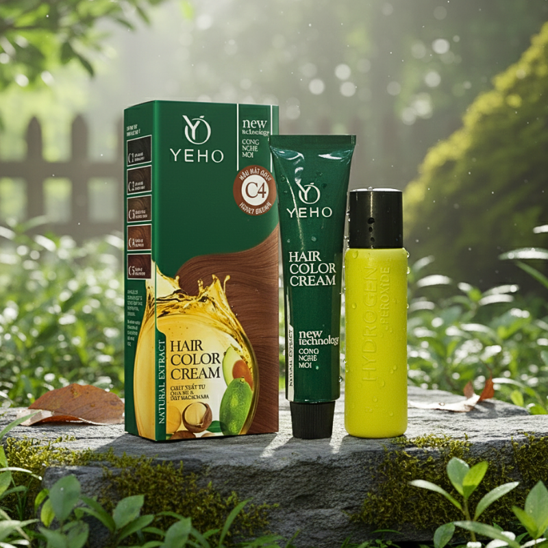 Nếu bạn muốn một màu nâu mật ong ấm áp, dễ hợp nhiều tông da, nhìn tự nhiên và gọn gàng mà vẫn tiện làm tại nhà thì YEHO C4 là lựa chọn rất ổn. Bộ này gồm kem nhuộm + oxy trợ nhuộm, thao tác đơn giản, phù hợp cho người bận rộn nhưng vẫn muốn tóc trông chỉn chu.